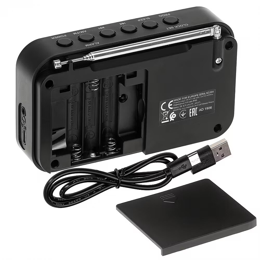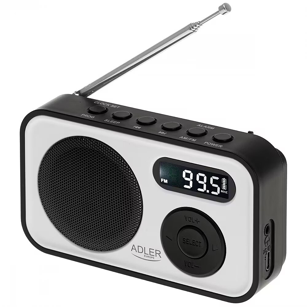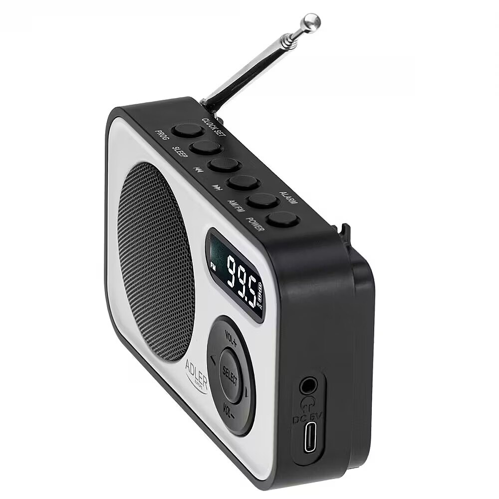 Adler AD 1906 to nowoczesne cyfrowe radio PLL AM/FM, które łączy funkcjonalność z wygodą użytkowania. Dzięki automatycznemu systemowi strojenia i szerokiemu zakresowi częstotliwości zapewnia precyzyjne i stabilne odbieranie ulubionych stacji. Jest idealne do domu, biura, podróży czy relaksu na świeżym powietrzu. Automatyczny system strojenia PLL umożliwiający precyzyjne wyszukiwanie stacji bez zakłóceń Szeroki zakres częstotliwości FM 87,5-108 MHz AM 522 - 1620 kHz Możliwość zapisania ulubionych stacji - 20 dla FM i 20 dla AM Wyraźny wyświetlacz LCD dla łatwej obsługi i szybkiej nawigacji Antena teleskopowa zapewniająca lepszy odbiór sygnału Funkcje dodatkowe, w tym zegar, budzik, drzemka i uśpienie Gniazdo słuchawkowe 3,5 mm pozwalające na słuchanie w trybie prywatnym Moc 0,8 W zapewniająca optymalną jakość dźwięku Nowoczesne zasilanie przez port USB-C dla wygodnego ładowania Możliwość pracy na bateriach (DC 4,5 V, 3x AAA) - idealne do użytkowania w podróży (baterie nie są dołączone)