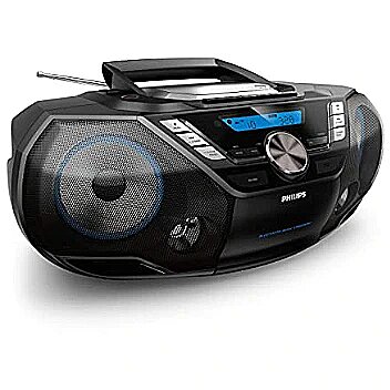 LongDesc - Powerful portable soundwith 12W RMS total output powerThe Philips Portable CD Soundmachine is an all-in-one powerful sound system you can take with you everywhere. It frees your music from different sournces - Bluetooth,. USB, CD, cassette tape, DAB+ and FM radio.Enjoy your music from multiple sources- Stream music wirelessly via Bluetooth™ from your smartphone- DAB+, DAB and FM for full radio experience- USB Direct for MP3/WMA music playback- Play MP3/WMA-CD, CD and CD-RW- Autostop cassette deckEasy to use- Handy remote control for extra convenience- Stereo headphone jack for better personal music enjoyment- Sleep timer for easy falling asleep to your favorite musicPowerful sound you can hear and feel- Bass Reflex Speaker System delivers a powerful, deeper bass- Dynamic Bass Boost for deep and dramatic sound- Digital Sound Control for optimized music style settings
