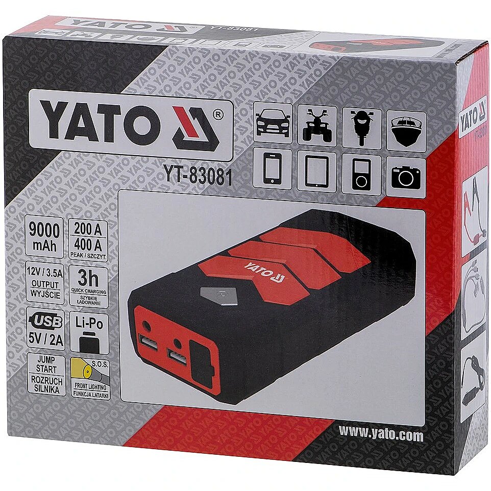 Yato Car jump starter YATO YT-83081 car power bank 9000 mAh 9000 mAh Black, Orange