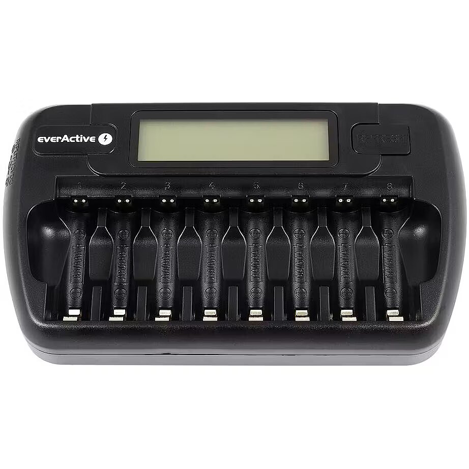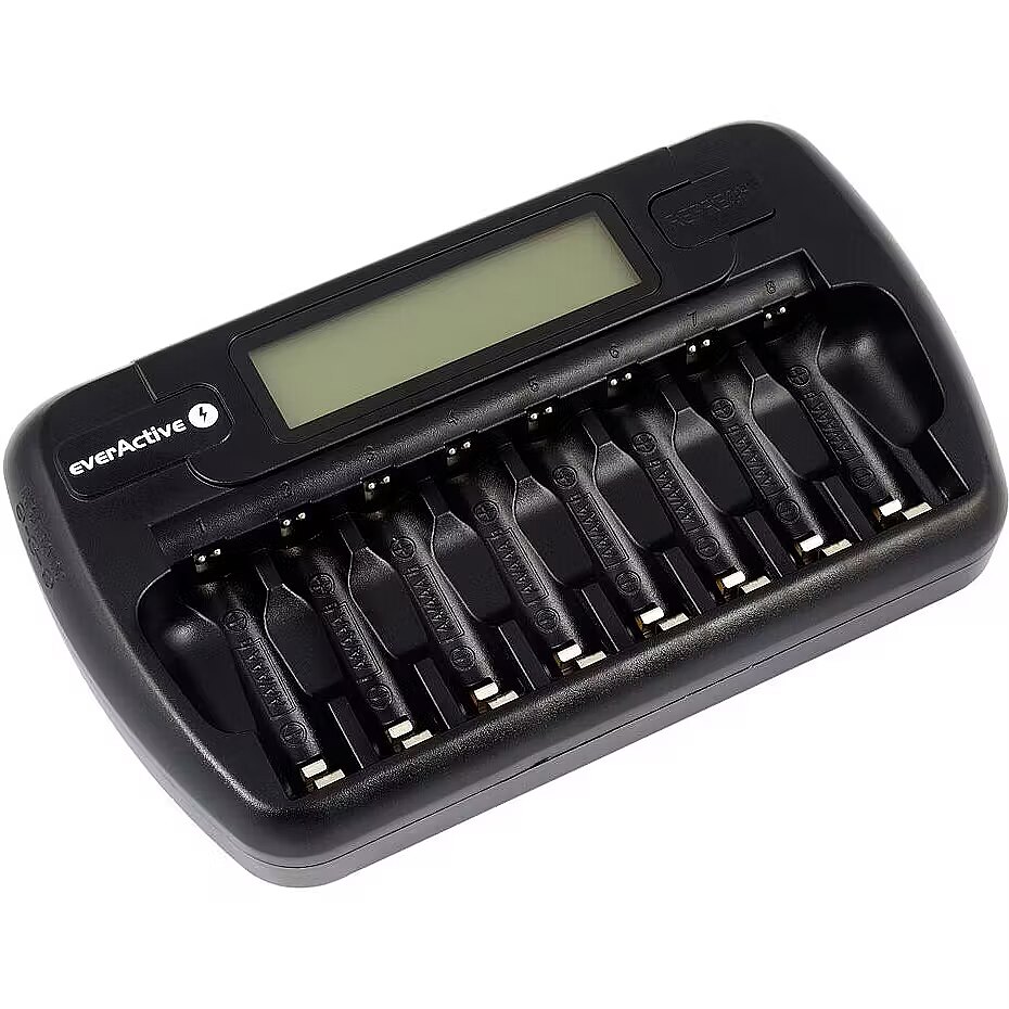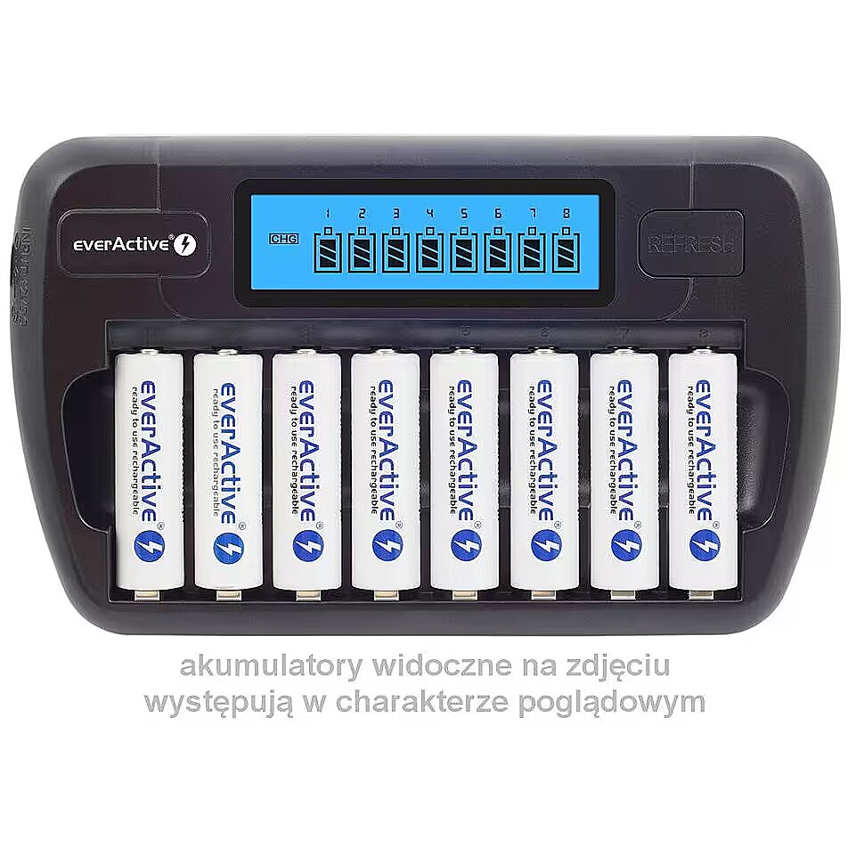 Description - Ładowarka akumulatorków Ni-MH profesjonalna everActive NC-800 Ładowarka everActive NC 800 posiada aż 8 niezależnych kanałów ładowania do akumulatorów Ni-MH w rozmiarach R6/AA lub R03/AAA, każde ogniwo jest ładowane indywidualnie. Pozwala na ładowanie 8 akumulatorków R6/AA lub R03/AAA w dowolnej konfiguracji / kombinacji, o dowolnej pojemności, dowolnego producenta.