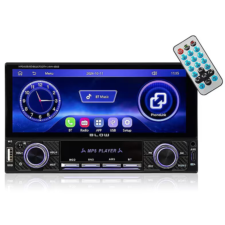 Description - Radio samochodowe AVH-686B 2DIN 7 cali RDS MP3/USB/micro SD/BLUETOOTH Radio samochodowe BLOW z dużym, kolorowym 6,86-calowym ekranem dotykowym. Idealne dla kierowców, którzy cenią sobie wygodę i funkcjonalność. To radio oferuje szereg nowoczesnych rozwiązań, które uczynią każdą podróż przyjemniejszą i bardziej komfortową.