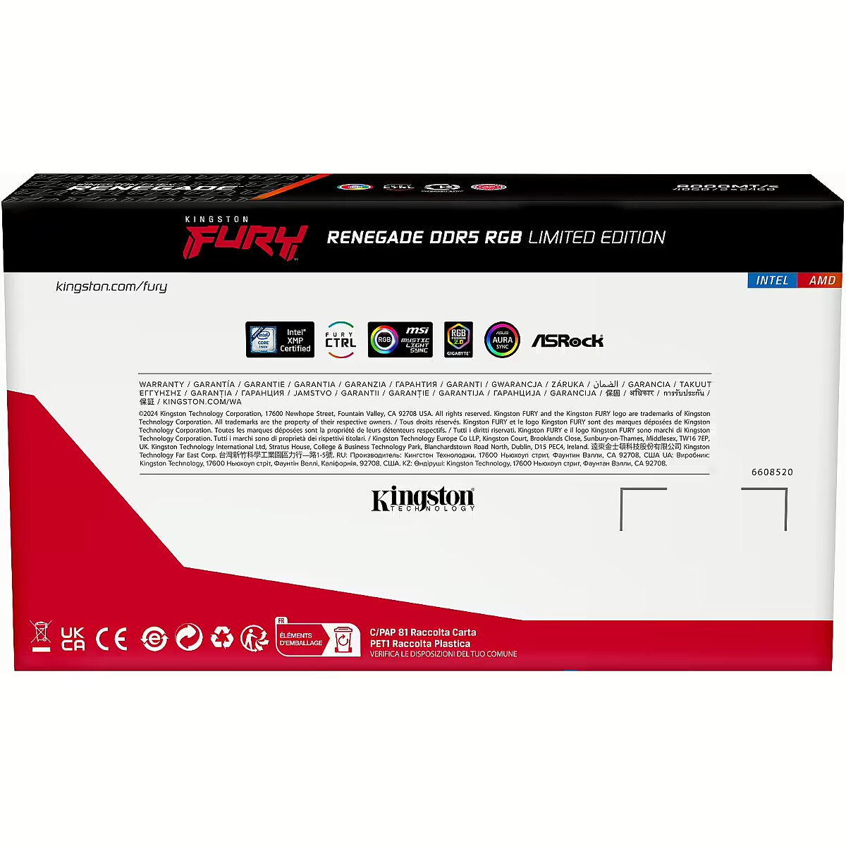 LongDesc - When it comes to your high-performance rig, you have to trust what’s under the hood. Don’t compromise. Whether you're looking for style or quality, Kingston’s FURY™ Renegade DDR5 RGB Limited Edition is turbocharged to take your DDR5 system to the next level. Engineered to provide high-speed endurance for reliable computing, whether you’re gaming, streaming, encoding or all the above simultaneously. Kingston’s FURY™ Renegade DDR5 RGB Limited Edition is the choice for the win.Newly designed curved and patterned modules resemble the livery of your favourite racecar’s bodywork. Showcasing 12 LEDs on the seemingly wind-swept light bar, utilising FURY CTRL™’s* 18 customisable RGB effects to bring the excitement of the starting lights every time your system boots.Racecar-inspired designNew red and black heat spreader with cascade elements gives the aerodynamic look and feel of a racecar ready to hit the curves of the most challenging circuit.Turbocharged performanceAt 8000MT/s, Kingston FURY Renegade DDR5 RGB Limited Edition features premium parts hand-tuned and backed by 100% factory testing at speed. Put the pedal to the metal for extreme overclocking potential.Patented Kingston FURY Infrared Sync Technology™Ensures distinct RGB lighting effects stay aligned, while Kingston FURY CTRL brings the excitement of the starting lights to your system with 18 preset effects*.Intel® XMP 3.0 certifiedLet Intel Extreme Memory Profile technology set the pace with advanced pre-optimised factory timings, speeds and voltages that make (race-winning) overclocking effortless.Qualified by leading motherboard makers**Cleared in trials to put you in pole position with your chosen motherboard.