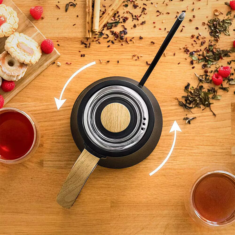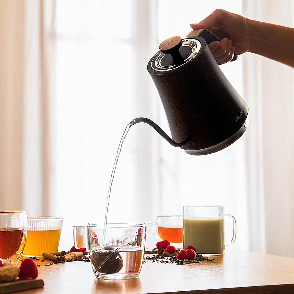 Cecotec Thermosense 500 Cisne, kettle black/wood, 1,200 watts, 1 liter