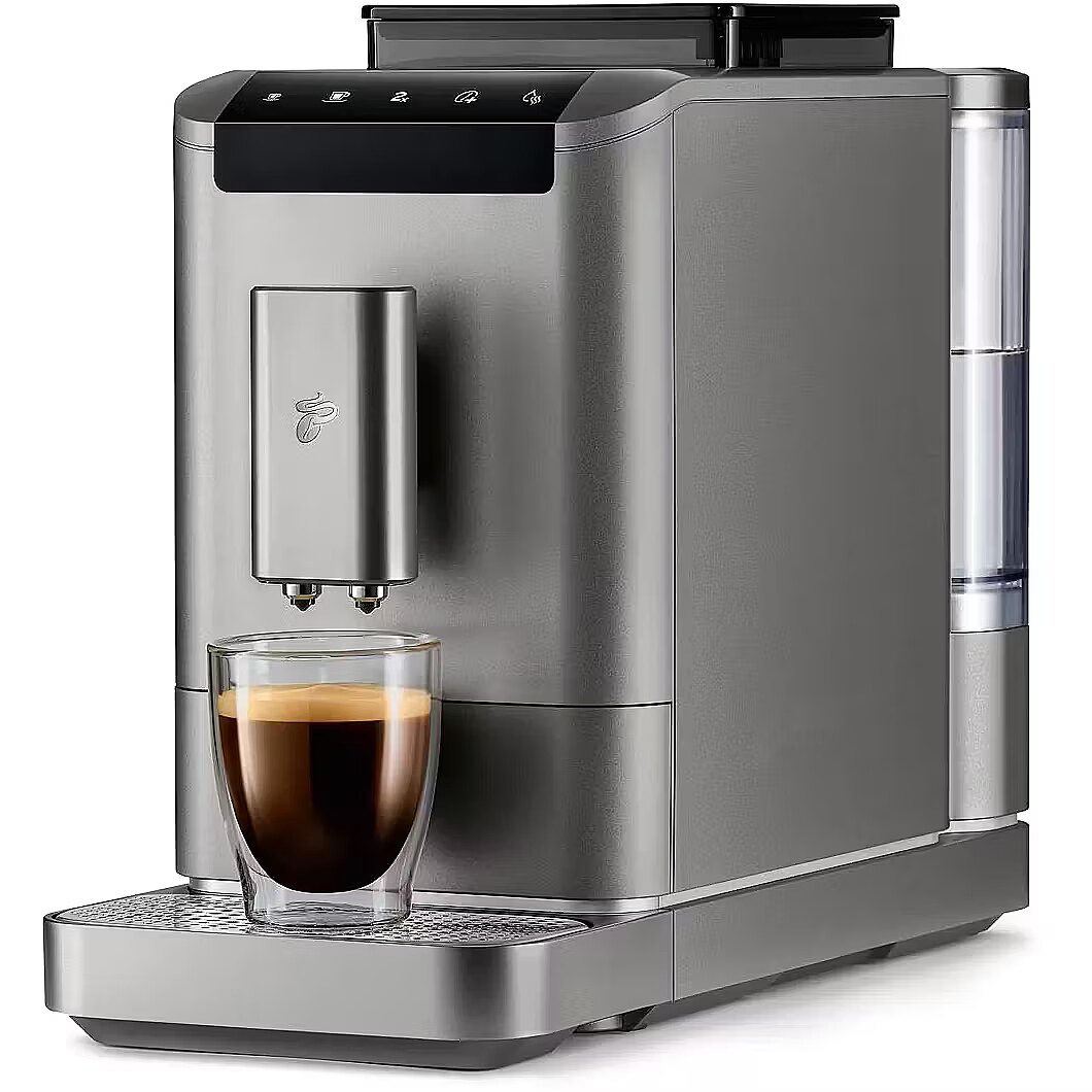 Description - Automatyczny ekspres do kawy Esperto2 Caff, Titanium Silver Funkcja double cup do jednoczesnego przygotowywania dwóch kaw Zbiornik na wodę o pojemności 1,4 l, wyjmowany z boku i mieszczący się w wiszących szafkach kuchennych Wyjątkowo duży pojemnik na ziarna o pojemności 300 g z okienkiem umożliwiającym kontrolę poziomu napełnienia Kompaktowe wymiary: tylko 18 cm szerokości Możliwość indywidualnego ustawienia intensywności kawy za pomocą funkcji Intense+ Łatwe czyszczenie dzięki zdejmowanemu modułowi zaparzania Program automatycznego odkamieniania Możliwość zaprogramowania ilości napoju: od 25 do 250 ml Wylot o regulowanej wysokości z podświetleniem filiżanki Eksperci od kawy w Tchibo produkują ekspresy do kawy od ponad 35 lat. Wraz z "Esperto2 Caff", Tchibo rozpoczyna w 2023 r. nową erę automatycznych ekspresów do kawy. Kompaktowy i nowoczesny model Esperto2 wyczarowuje świeżo zmielone espresso i caff crema za jednym dotknięciem przycisku. Każda filiżanka jest specjalnie dostosowana do kaw Tchibo - nasi eksperci od kawy zaprojektowali idealne proporcje pomiędzy stopniem zmielenia, ilością wody, temperaturą i ciśnieniem. Dla amatorów mocniejszego naparu, idealnie sprawdzi się funkcja regulacji intensywności kawy dzięki technologii Intense+. Wysokiej jakości młynek stożkowy ze stali nierdzewnej oraz łatwe czyszczenie dzięki wyjmowanemu modułowi zaparzającemu i automatycznemu programowi odkamieniania sprawiają, że ten automatyczny ekspres jest łatwy w utrzymaniu i trwały. Dzięki wysokiej jakości wzornictwu i zajmującemu niewiele miejsca kształtowi (tylko 18 cm szerokości!) Esperto doskonale prezentuje się w każdej kuchni. Zamów, ciesz się i korzystaj od razu!