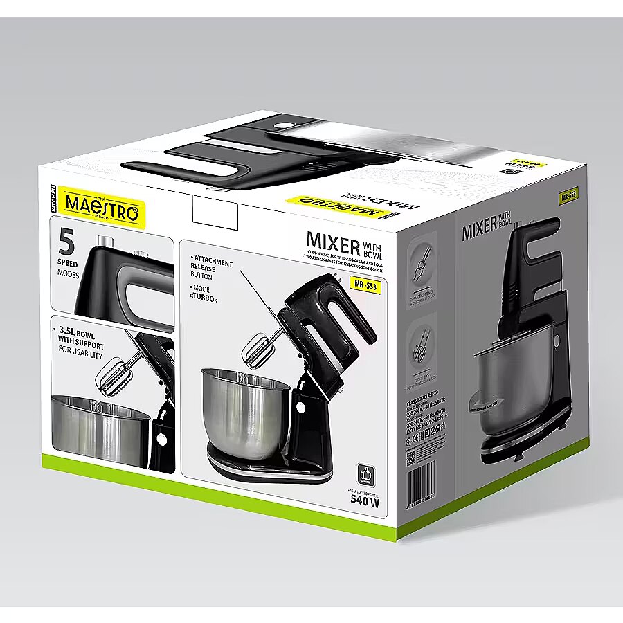 productName - Maestro MR-553 Stand mixer with rotating bowl 600 W Black, Steel