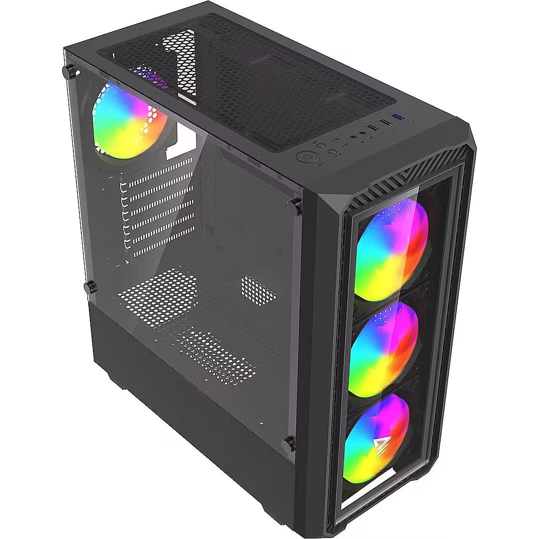 The front panel made entirely of tempered glass highlights the RGB (Red Green Blue) lighting of the fans and creates a minimalist, clean design. Four RGB fans included full 4-pin PWM control The set includes four 120 mm RGB (Red Green Blue) fans they not only look modern but are also highly functional.