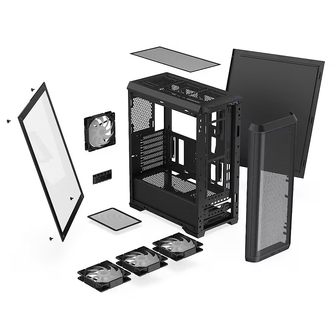 ShortDescription - Obudowa Ventum VT4V Evo TG ARGB wyróżnia się bardzo wysokim przepływem powietrza zapewnionym przez otwarty przedni panel,