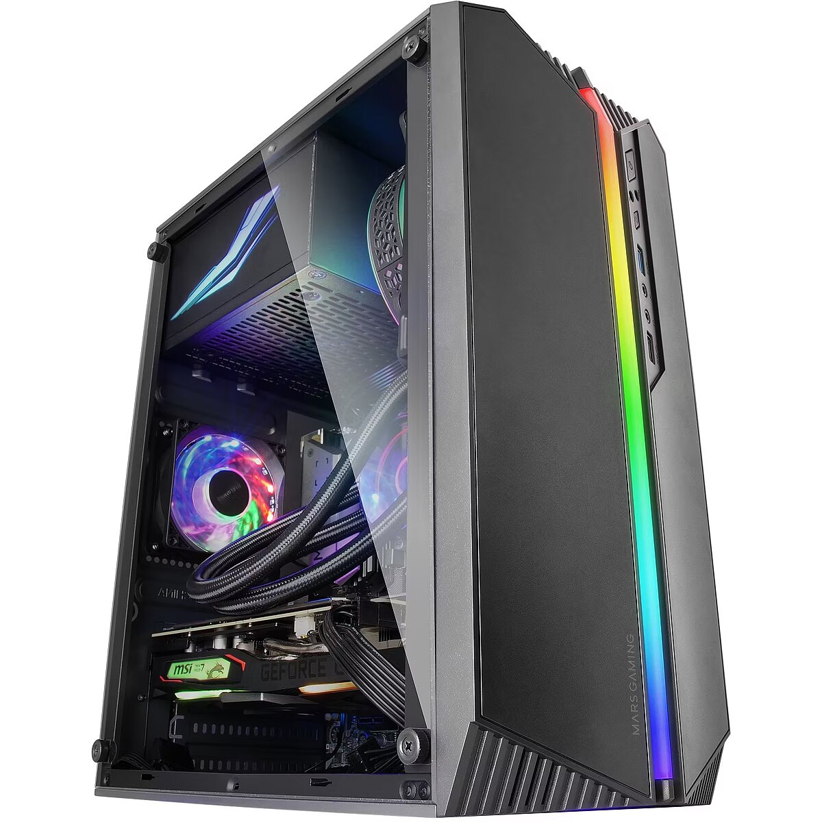 ShortSummaryDescription - Mars Gaming MC-S1 Black Compact Micro-ATX Gaming PC Case ARGB Lighting 12 Modes FRGB Fan Full Side Window, Mini Tower, PC, Black, micro ATX, Mini-ITX, Gaming, Amber, Blue, Green, Red