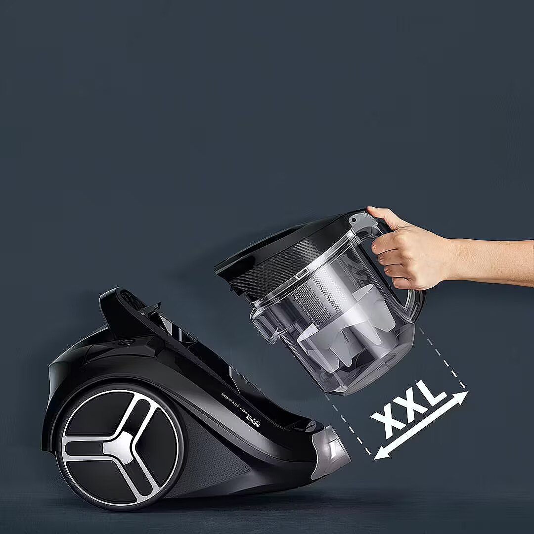 MediumDescription EN - The most powerful XXL bagless vacuum cleaner by Tefal The Tefal Compact Power XXL Bagless Vacuum Cleaner offers excellent cleaning results with a 900 W max. low consumption motor* in a compact design. Its advanced 3-level filtration captures over 99.98% of dust particles