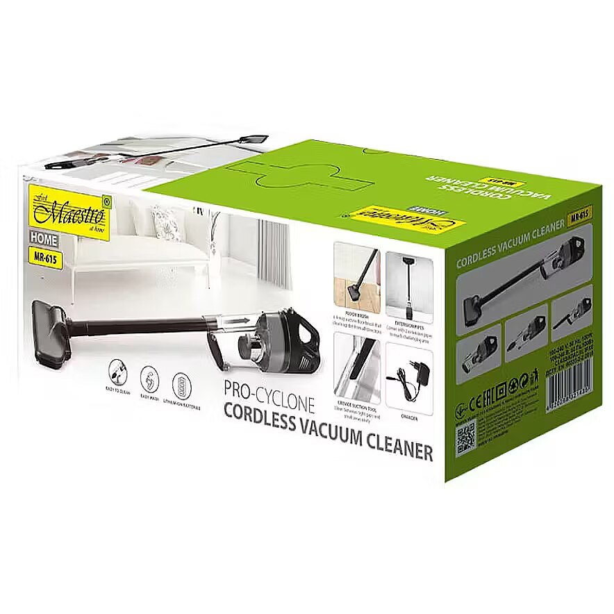 Description - Odkurzacz pionowy bezprzewodowy Maestro 2w1 MR-615 to wszechstronne urządzenie, które sprawdzi się zarówno w domu, jak i w samochodzie. Jego moc wynosi 100W, a siła ssania osiąga 6,5 kPa, co zapewnia skuteczne usuwanie zabrudzeń z różnych powierzchni. Czas ładowania akumulatora wynosi około 3 godziny, natomiast czas pracy na jednym ładowaniu to 20 minut, co wystarcza na szybkie sprzątanie. Pojemnik na kurz ma pojemność 0,5 litra, dzięki czemu odkurzacz nie wymaga częstego opróżniania. Urządzenie wyposażone jest w akumulator litowo-jonowy o pojemności 2000 mAh, który gwarantuje stabilną pracę. W zestawie znajduje się końcówka do podłóg oraz dysza szczelinowa, co umożliwia dokładne czyszczenie zarówno dużych powierzchni, jak i trudno dostępnych miejsc. Dodatkowo, odkurzacz można używać jako odkurzacza samochodowego, co czyni go jeszcze bardziej praktycznym i uniwersalnym narzędziem do sprzątania. Czarny kolor nadaje mu elegancki wygląd, który z pewnością będzie pasował do każdego wnętrza. Dzięki temu sprzętowi sprzątanie stanie się szybsze, łatwiejsze i bardziej efektywne.