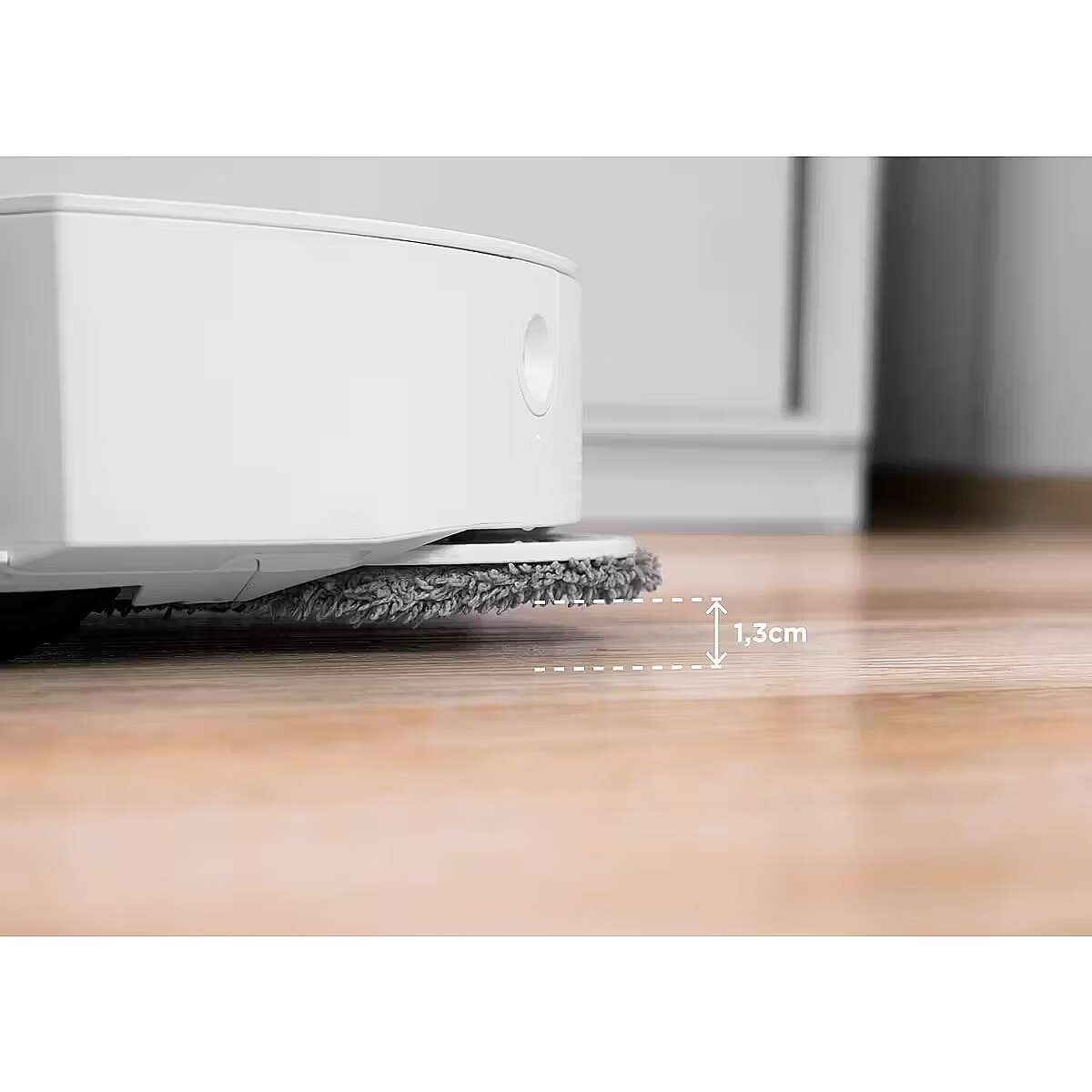 Dwa obrotowe mopy zapewniają dokładne i skuteczne czyszczenie wszystkich twardych podłóg. Przed rozpoczęciem sprzątania robot automatycznie uzupełnia wodę w zbiorniku i moczy tkaniny czyszczące. W razie potrzeby w trakcie pracy podjedzie, aby uzupełnić wodę i wyprać tkaniny. Częstotliwość moczenia można łatwo ustawić w aplikacji, co daje pełną kontrolę nad procesem sprzątania. Po zakończeniu sprzątania robot wraca do stacji multifunkcyjnej, gdzie mopy są prane i dokładnie suszone gorącym powietrzem, co eliminuje zapachy i namnażanie się bakterii. Unika nawet małe przeszkody