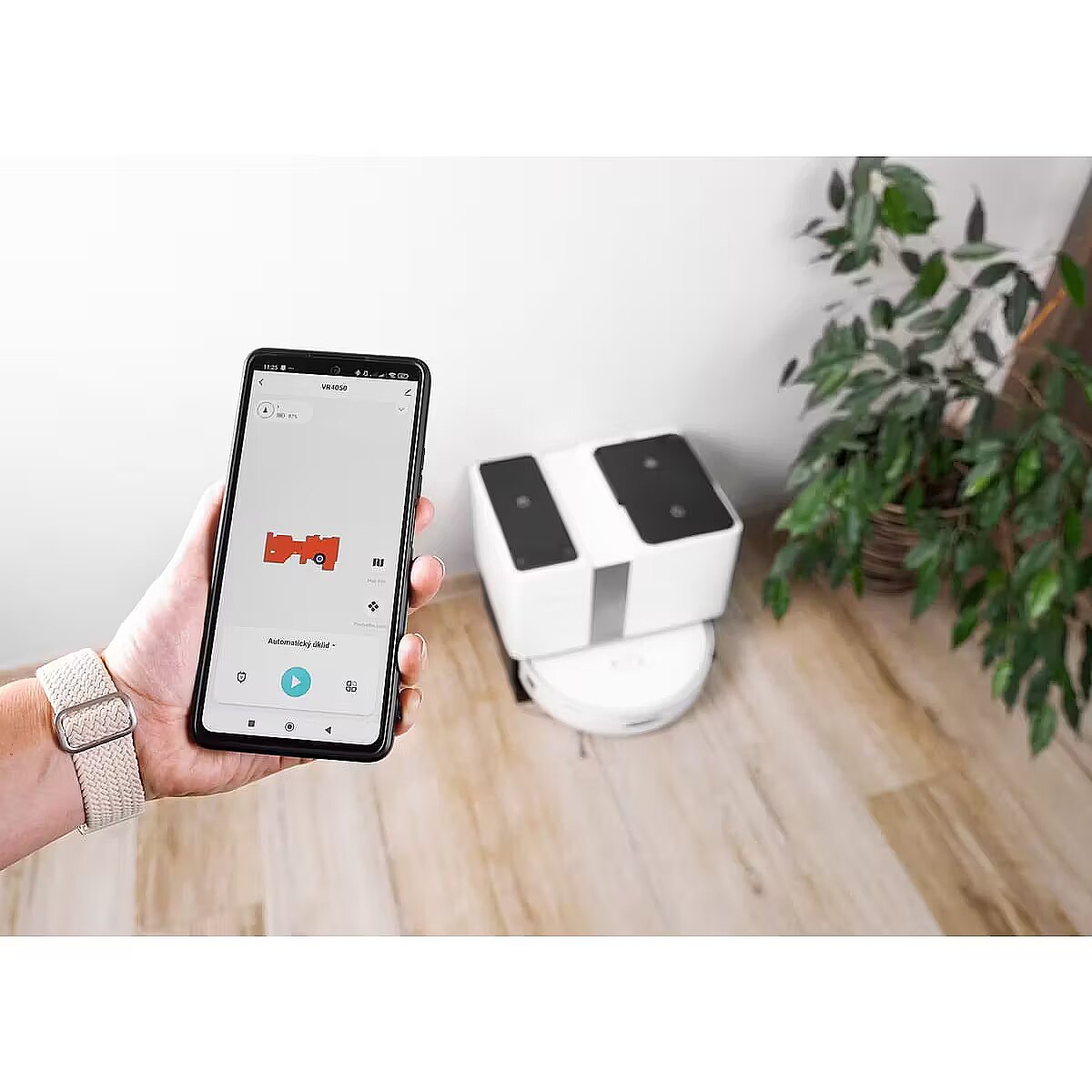 Robot sprzątający VR4050 to idealny wybór zarówno do małych mieszkań, jak i przestronnych domów. Bez trudu poradzi sobie z każdą powierzchnią i każdy zaplanowany cykl sprzątania doprowadzi do końca. Wyposażony jest w wysokiej jakości akumulator Li-Ion 5200 mAh, który pozwala na pracę do 270 minut na jednym ładowaniu. Gdy poziom baterii spadnie poniżej 15%, robot automatycznie wróci do stacji dokującej, naładuje się i następnie wznowi sprzątanie w miejscu, w którym przerwał. Inteligentne sterowanie przez aplikację i asystenta głosowego