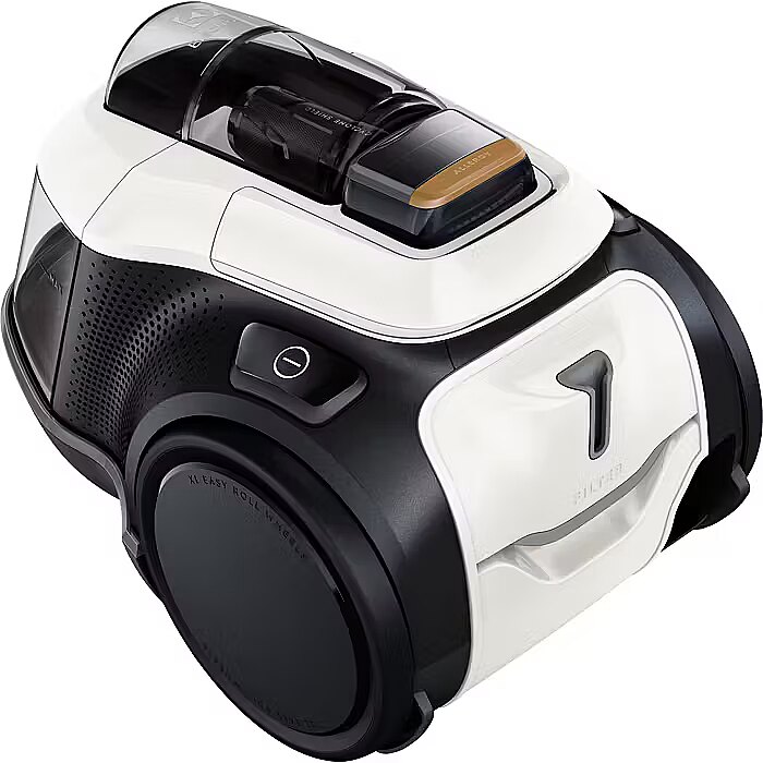 The intuitive dustbin emptying system and easily accessible filter allow for quick and simple use. Smooth-rolling wheels