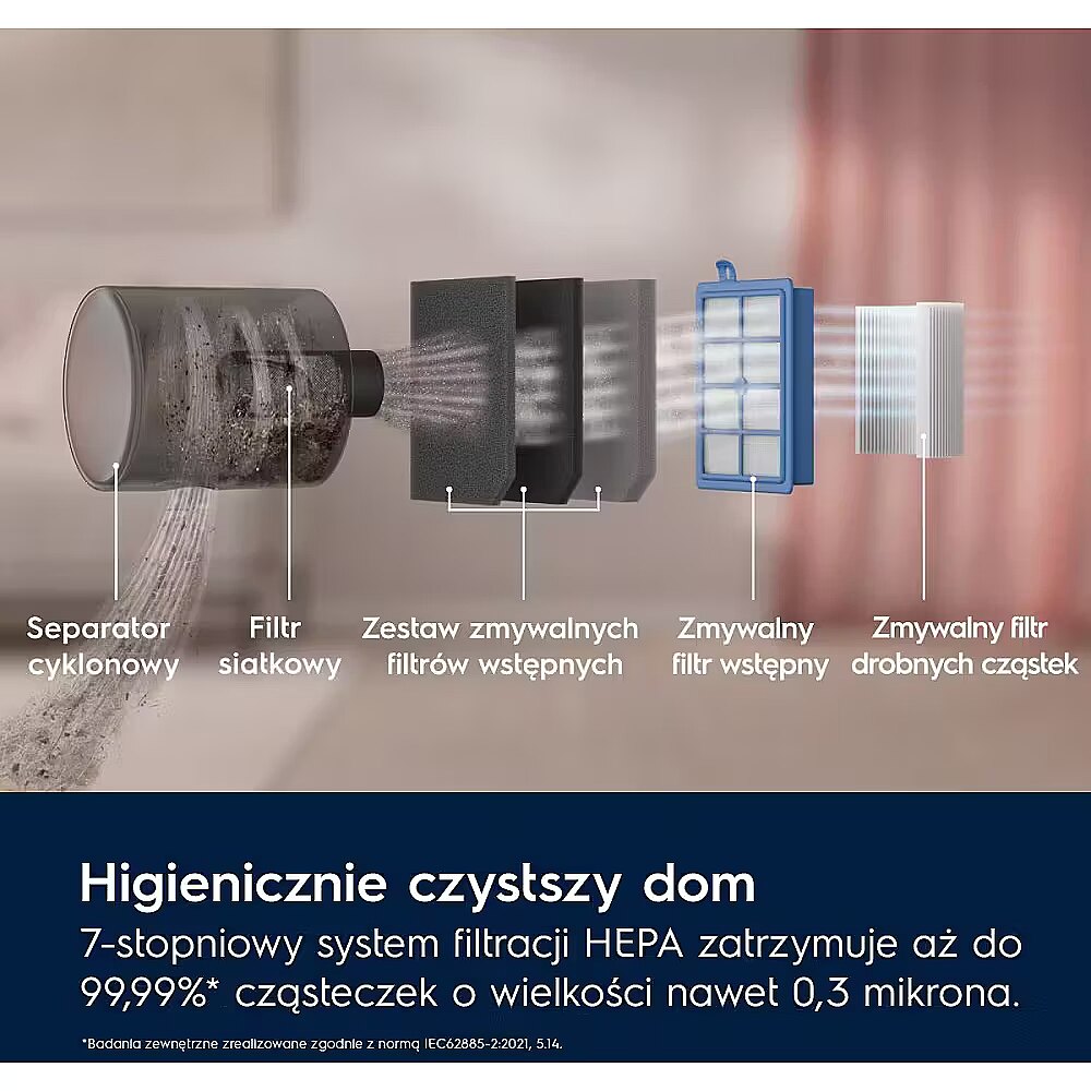 The revolutionary 3D filter a key component of the 7-stage filtration system ensures outstanding vacuuming efficiency with minimal loss of suction power. Hygienically cleaner home
