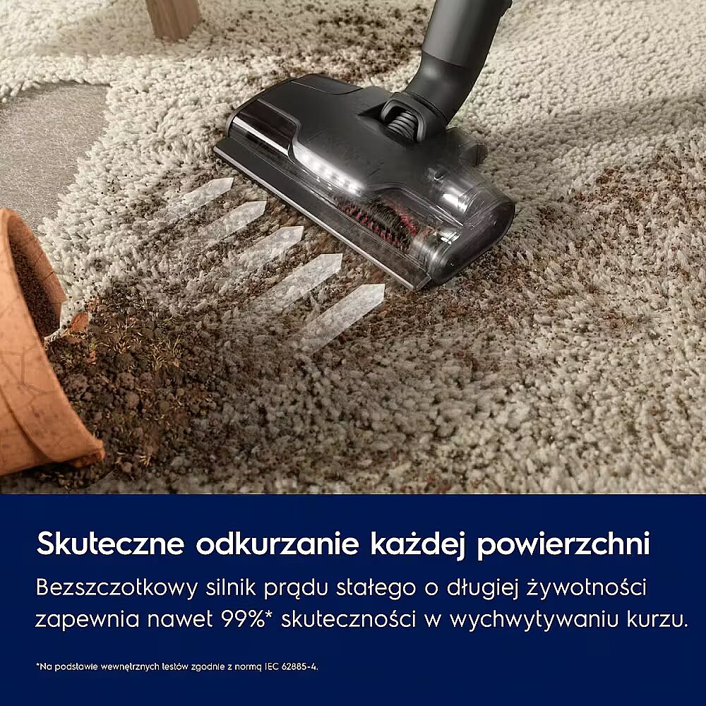 The PowerPro Multi-surface nozzle provides up to 99%* cleaning efficiency in a single double pass. Its long-lasting brushless DC motor and unique rubber flaps ensure that all dust and dirt are collected in one go.