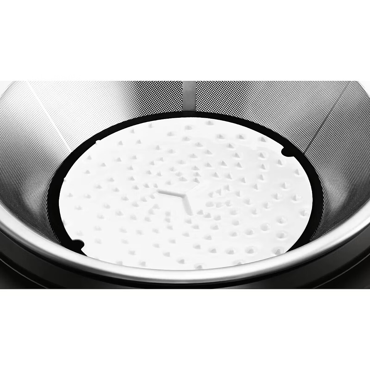 Functions - Safety Stop: urządzenie można włączyć tylko wtedy, gdy wszystkie jego elementy zostały prawidłowo zamontowane. Urządzenie wyłącza się również automatycznie, jeżeli w trakcie pracy zostanie otwarta pokrywa. Brak ryzyka skaleczenia się, brak możliwości rozpryskiwania soku.