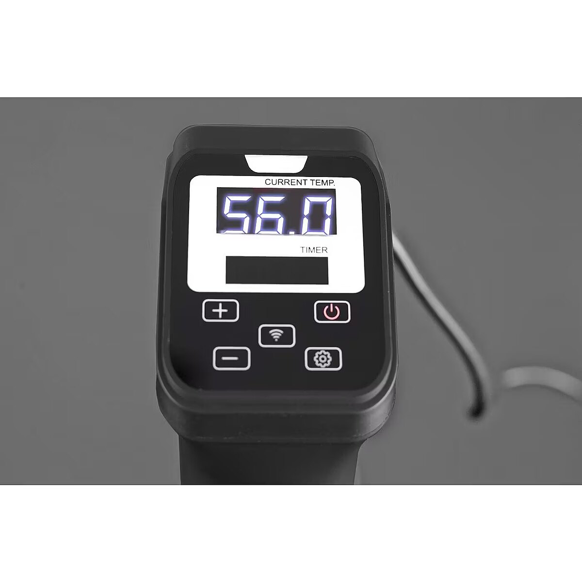 Technical details > Other features - Precise temperature control up to 90 °C increments in 0.5 °C increments (32-194° Fahrenheit). Timer function: can be precisely set in 1 minute increments up to 99 hours 59 minutes. Pot height at least 12 cm. Smart Control: SousVide Stick can be controlled and read with the CASO Control App. Simple operation of the LED display using a sensor-touchcontrol panel.
