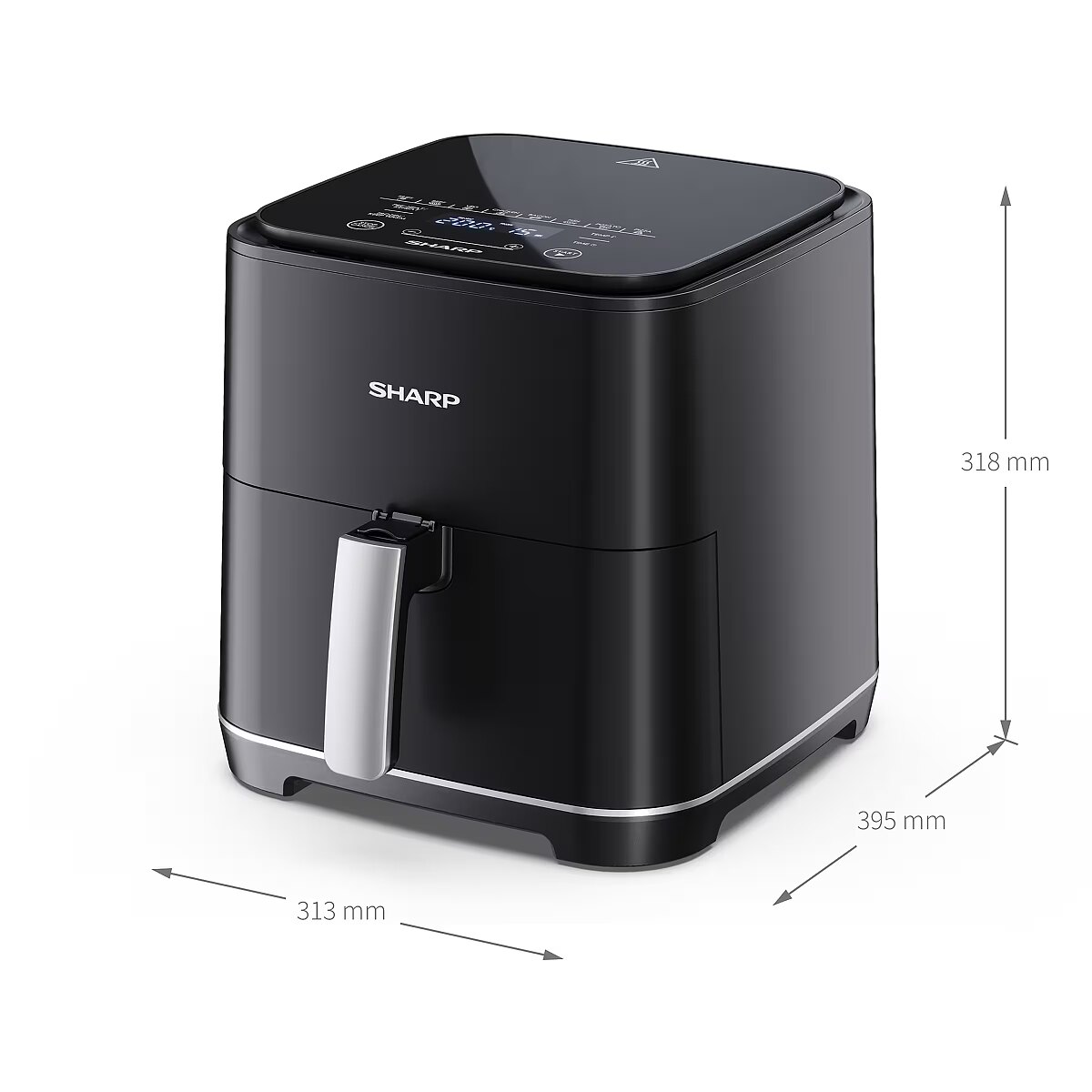 LongSummaryDescription - Sharp AF-GS552AE-B. Product type: Hot air fryer, Capacity: 5.5 L. Construction type: Single, Product colour: Black, Silver, Control type: Touch. Display type: LED. Power: 1650 W, AC input voltage: 220 - 240 V, AC input frequency: 50 Hz. Width: 313 mm, Depth: 395 mm, Height: 318 mm