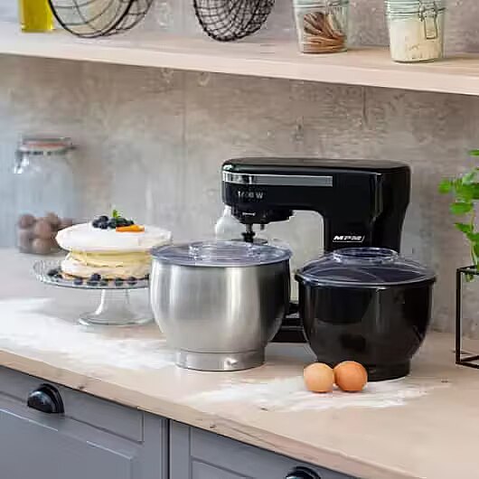 Gdzie kreatywność spotyka się z praktycznością, tam pojawia się robot planetarny MRK-21, który ułatwia i przyspiesza proces przygotowywania potraw. Pomocne są dwie misy: ze stali nierdzewnej o pojemności 5,0 l i plastikowa o pojemności 4,0 l, dzięki którym dostosujesz wielkości porcji w zależności od potrzeb. Jeśli robisz danie, które wymaga osobnego przygotowania różnych składników np. ciasta i lukru, dwie misy pozwolą Ci na płynne przejście między etapami bez konieczności mycia misy po każdym użyciu. Wystarczy umieścić odmierzone składniki w naczyniu miksera i włączyć odpowiednią prędkość, a następnie zmienić misę i czynność powtórzyć. Kompaktowe urządzenie o wielkiej mocy