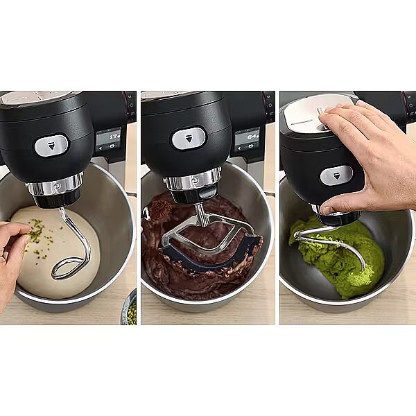 Loovate küpsetamis- ja toiduvalmistamisideede elluviimiseks on vaja spetsiaalseid lisatarvikuid. Professionaalne kondiitritarvikute komplekt tagab täiuslikud tulemused ja mugava kasutamise. See sisaldab paindlikku silikoonservaga segamistööriista, muudetava kõrgusega ja üleni metallist visplit ning ajamikaitsmega tainakonksu. Kõiki tarvikuid saab pesta nõudepesumasinas. 7 kiirust