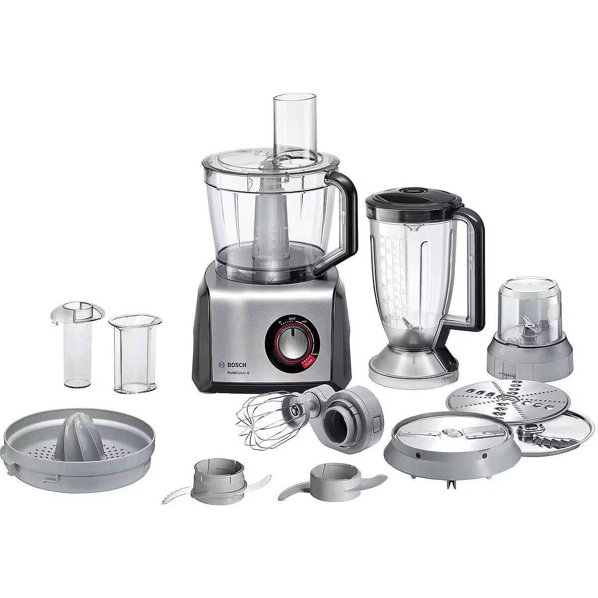 LongSummaryDescription - Bosch MC812M844. Bowl capacity: 3.9 L, Product colour: Black, Stainless steel, Control type: Rotary. Bowl material: Plastic, Material knife: Stainless steel. Power: 1250 W, AC input voltage: 220 - 240 V, AC input frequency: 50 - 60 Hz. Width: 250 mm, Depth: 300 mm, Height: 430 mm. Packaging content: 1 x lid, 1 x plastic kneading hook, 1 x plastic mixing bowl, 1 x plastic blender attachment, 1 x...