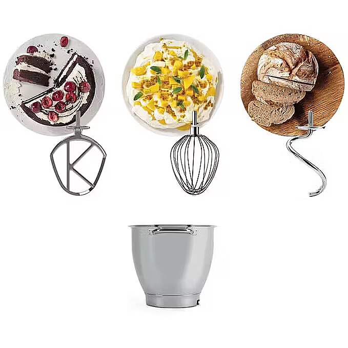 LongDesc - Create those big batches of cakes and bread with the Chef XL Pro.Handle even the heaviest of loadsThe Chef XL Pro is ideal for those needing a kitchen machine robust and large enough to handle big batches of dough and mixes. Be it egg whites for meringue or pastry for pies, the 6.7L stainless steel bowl gives you the capacity you need. Easy controlThe start/stop buttons and variable speed dial make the machine easy to control, and the fold function enables you to gently fold ingredients in. For additional safety, there is a fixed stainless steel finger guard.The Chef XL Pro also comes with three stainless steel SystemPro bowl tools – K-Beater, spiral dough hook and power whisk. Their durability will give you the confidence to keep on creating.