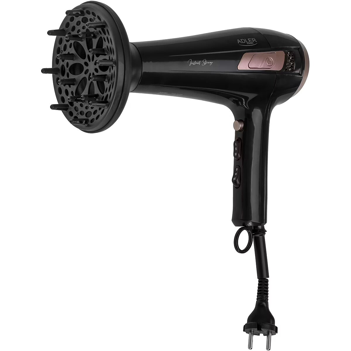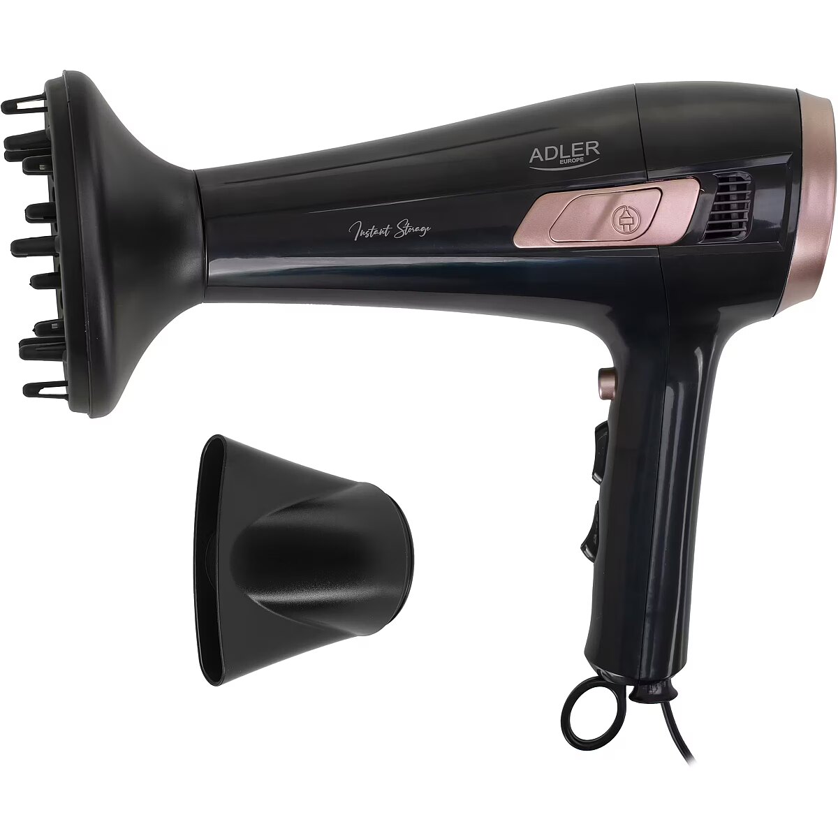 Name - Adler Hair dryer with retractable power cord | AD 2283 | 2400 W | Number of temperature settings 3 | Diffuser nozzle | Black/Golden Rose