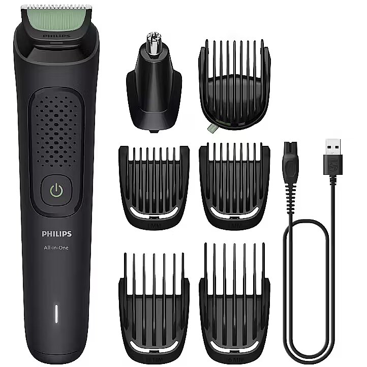 Description - One tool, easy and efficient styling For face and hair Designed for versatility and efficiency. With 7 attachments, self-sharpening steel blades for long-lasting precision and rounded tips for gentler trimming, the trimmer gives you the versatility to efficiently tackle all of your grooming needs.Self-sharpening bladesAdjustable comb (3-7 mm)Nose trimmerEasy hair clipping7 tools for all your grooming needsBeard trimmingBlade with rounded tipsErgonomic gripEasy-to-maintain attachments60 min runtimeCharging LED- *Upon registration on Philips.com within 90 days of purchase