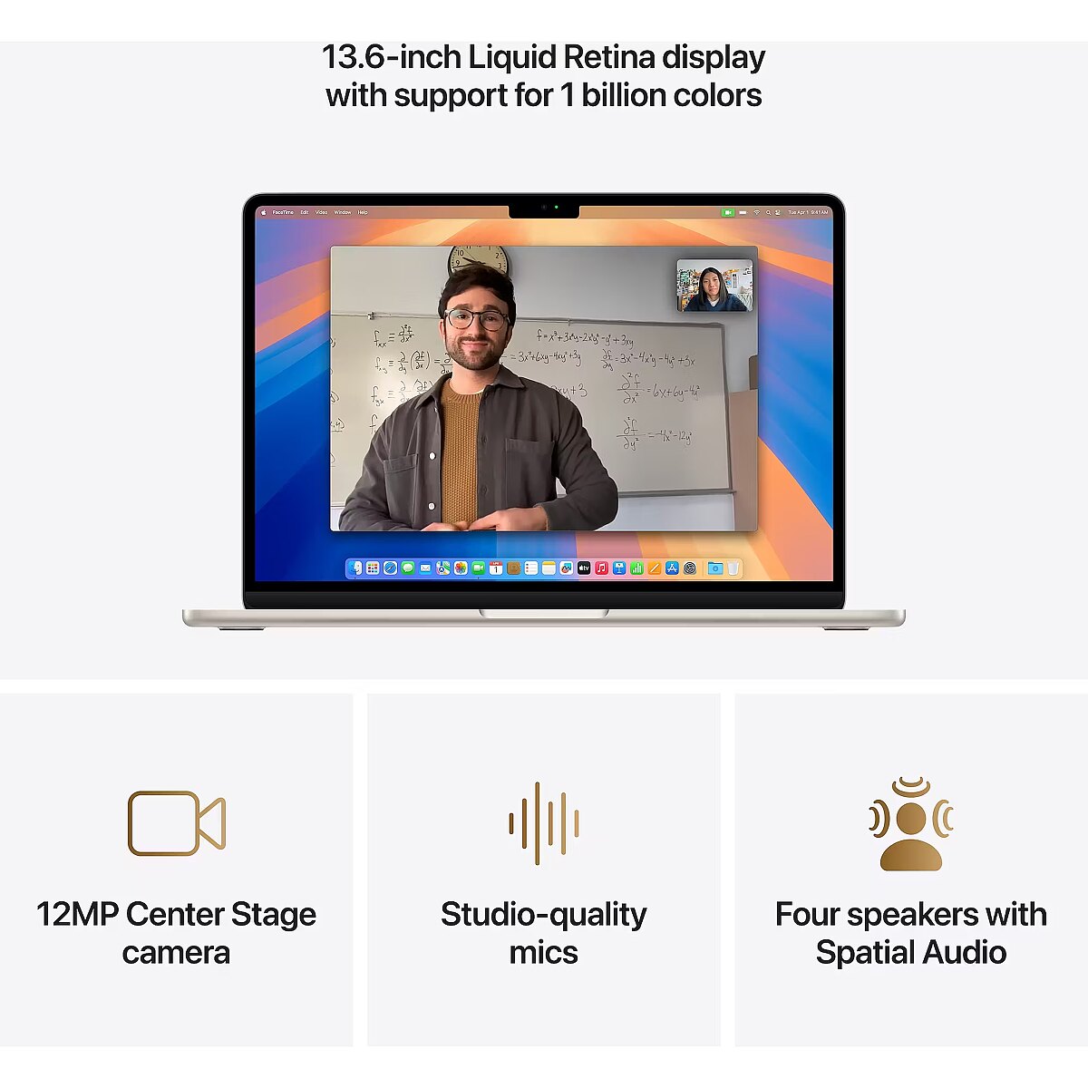 Wyświetlacz Liquid Retina w MacBooku Air obsługuje miliard kolorów. Zdjęcia i filmy imponują kontrastem i bogactwem detali, a tekst jest wyjątkowo czytelny.