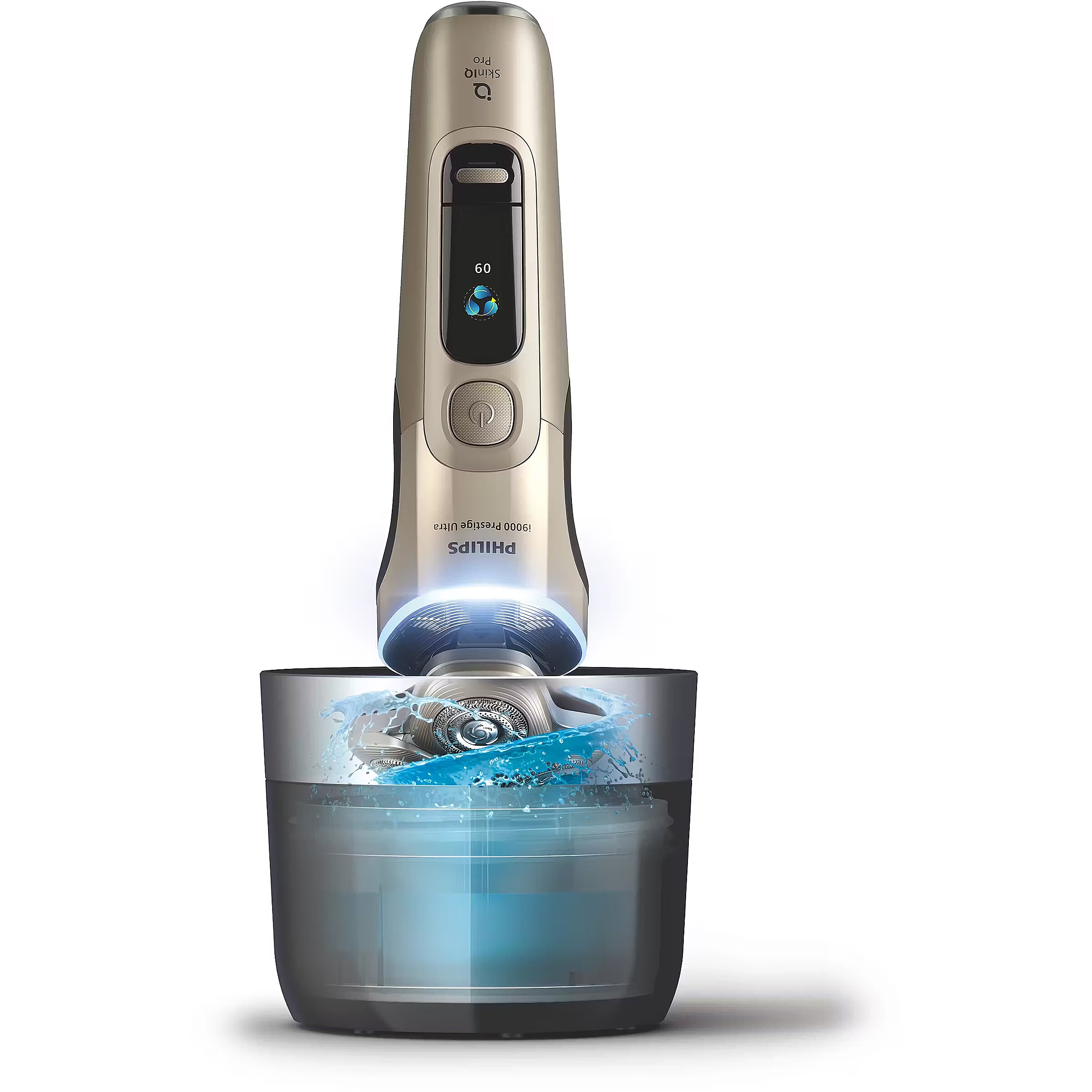 Description - i9000 Prestige UltraWet/Dry Electric Shaver, SkinIQ Pro All-day close shave, excellent skin comfort Our most innovative shaver, the Philips i9000 Prestige Ultra, with its triple-action Lift&Cut system, cuts hair at the root for smooth skin all day long, even in hard-to-reach areas. SkinIQ Pro technology now includes 5 shaving modes for superior skin comfort. Triple Action Lift & Cut Technology NanoTech Dual Precision Blades 360° precise, flexible head Active pressure and motion control