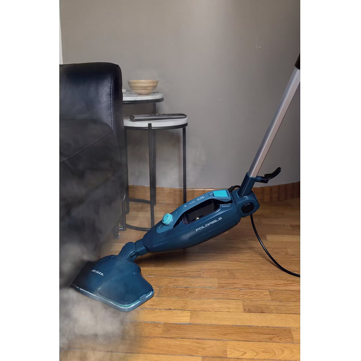 ShortSummaryDescription - Ariete 4175 Steam Mop Foldable 10 in 1, Foldable steam mop, 1500 Watt, 10 functions in 1, Attachment kit, 350 cc capacity, Blue, Steam mop, 0.35 L, Blue, Buttons, Rotary, Telescopic, 5 m