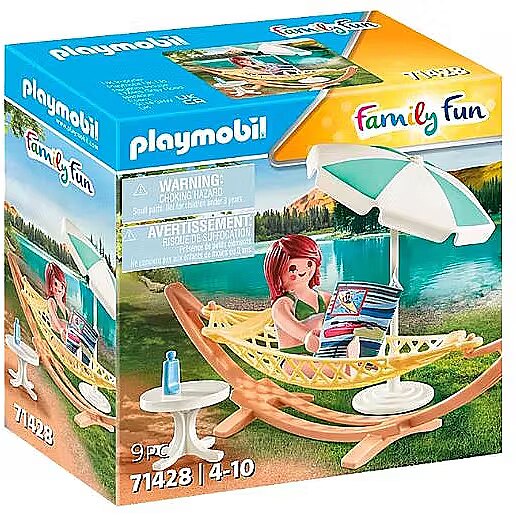 Description - Relax and enjoy the sun in the cozy PLAYMOBIL hammock! With many summer accessories. Camping vacation, that means leisure, nature and relaxation. And where better to do that than in the cozy PLAYMOBIL hammock. This is where the vacationer makes herself comfortable with her magazines. Reading, dozing, dreaming, that's what the perfect vacation looks like. The PLAYMOBIL playset consists of a PLAYMOBIL figure, a hammock, a table, an umbrella and other extras. The detailed playsets of the PLAYMOBIL Family Fun series invite children aged 4 and up to creative role-playing games.