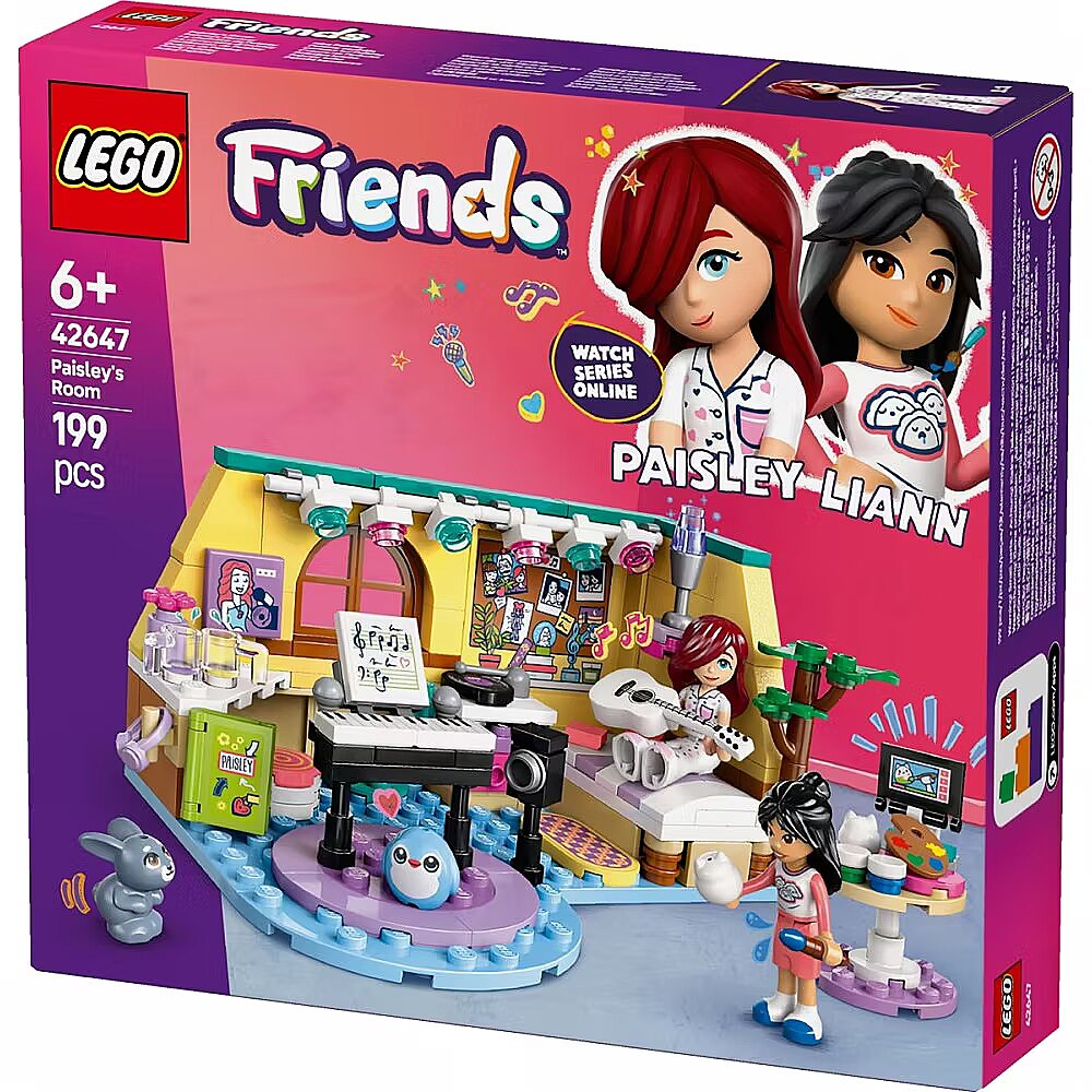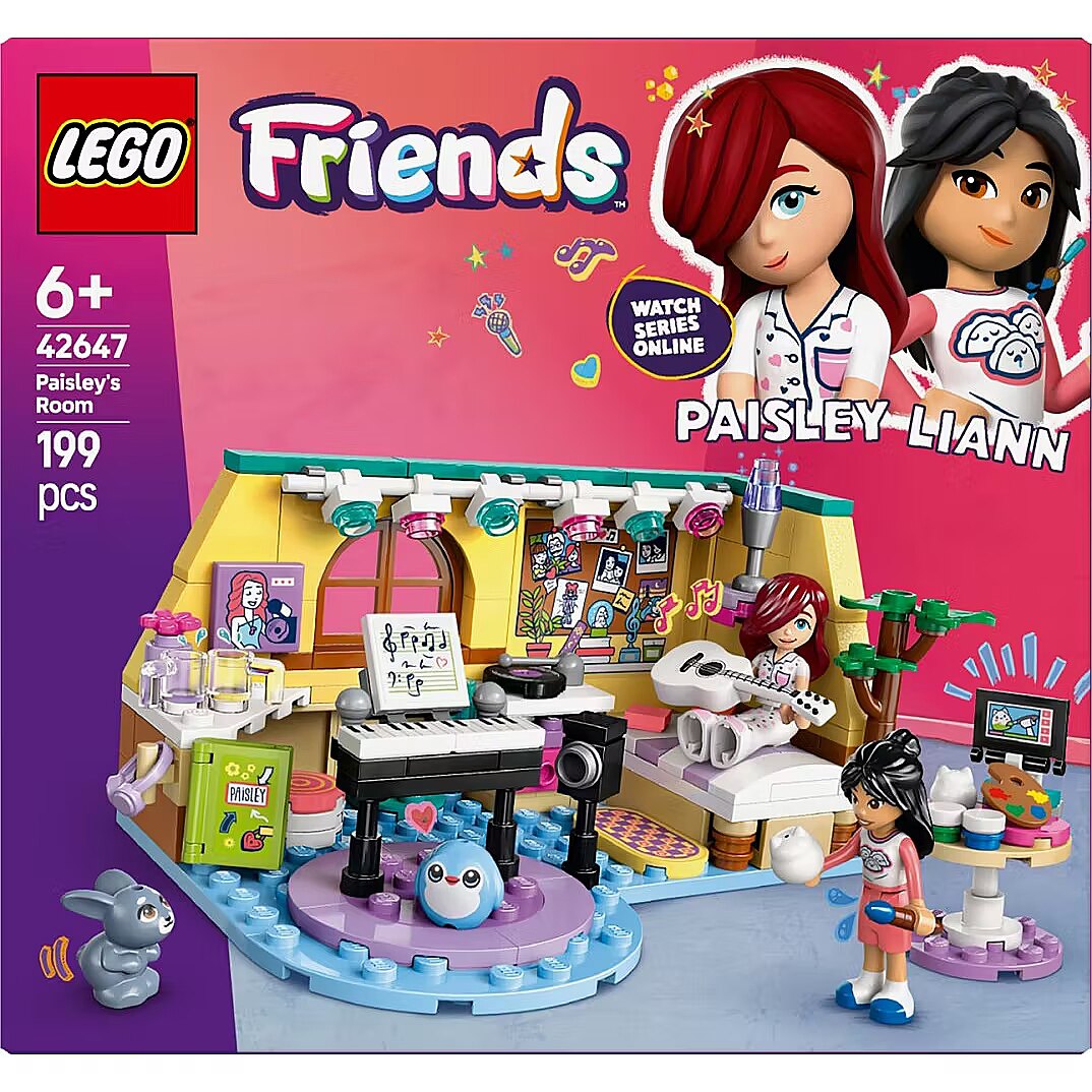 Description - Let kids aged 6 and up create their own friendship stories with the LEGO Friends Paisleys Room (42647) set for girls, boys and any young fan of music and art. The set is packed with friendship moments as art-lover Liann joins musician Paisley for a day of creativity. The set comes with 2 LEGO Friends minidolls, a pet bunny figure and a special plushie-style LEGO piece.