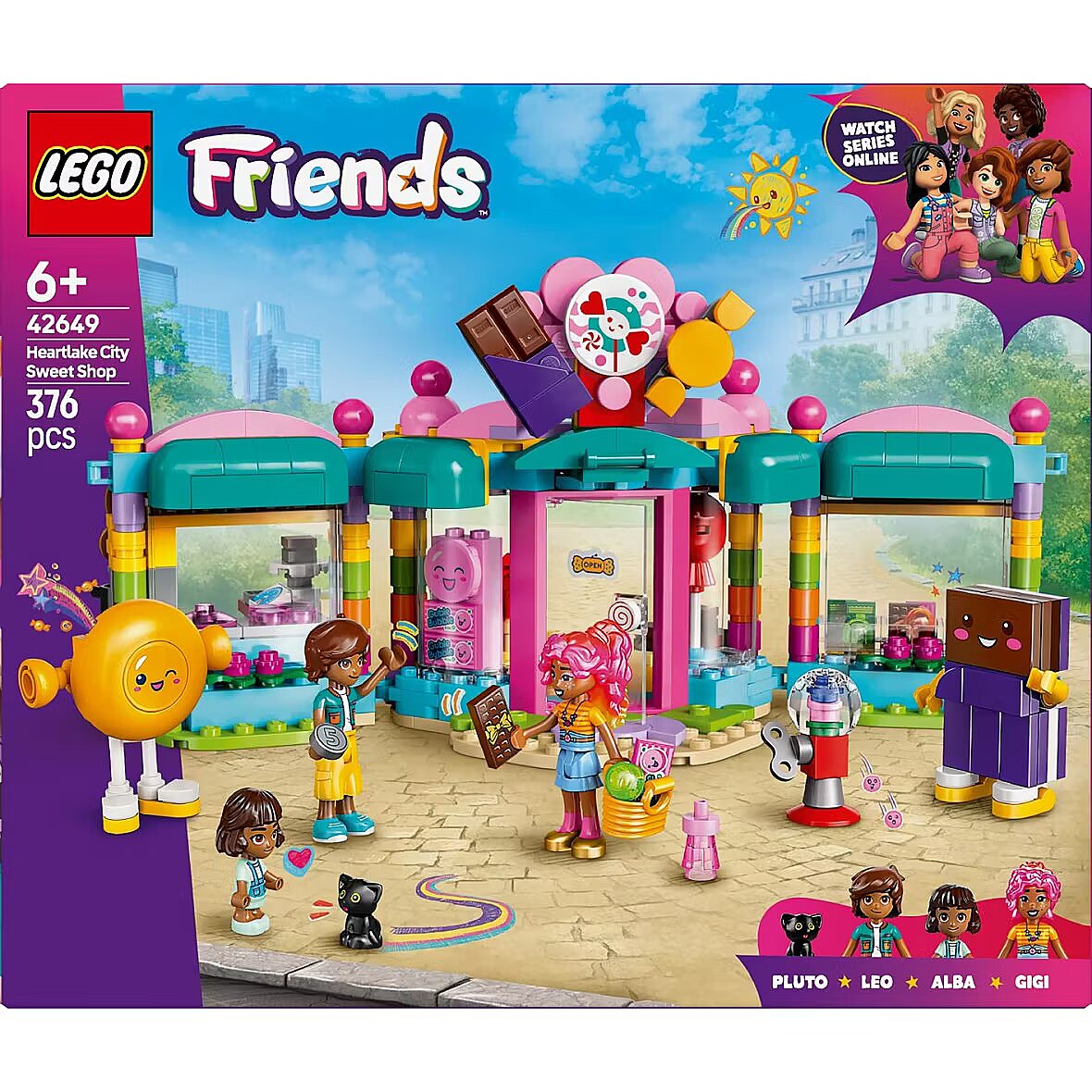 Description - Heres a sweet birthday gift for kids aged 6 and over who love pretend-play sets and shop toys. Girls, boys and young builders can explore the LEGO Friends Heartlake City Sweet Shop (42649), which is packed with goodies and fun details. The set comes with 2 minidolls, a micro-doll, a cat figure and lots of accessories for creative play.