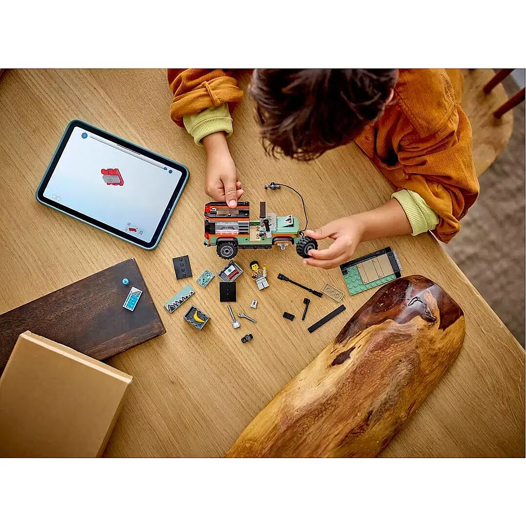 Description - Dzięki zestawowi LEGO City Górska ciężarówka terenowa 4x4 (60447) sześciolatki i starsze dzieci mogą wybrać się na górską wyprawę samochodową. Ta wytrzymała ciężarówka jest pełna fajnych funkcji i sprzętu do eksploracji. Zawiera schowki na dachu, narzędzia, wytrzymałe opony i działającą wyciągarkę do pokonywania stromych zboczy. Obróć rurę wydechową pojazdu, a maska podniesie się, co umożliwi Ci naprawę silnika! Wystarczy dodać minifigurkę poszukiwacza przygód i można zaczynać zabawę! Ten model ciężarówki terenowej zawiera drukowane instrukcje budowania oraz cyfrowe instrukcje w aplikacji LEGO Builder. Dzieci mogą w niej powiększać i obracać modele w 3D, śledzić postępy oraz zapisywać zestawy. Superpojazdy LEGO City to bogate w funkcje zabawki poruszające się w powietrzu, po lądzie i po wodzie, które umożliwiają pomysłową zabawę bez ograniczeń. Dzieci mogą dodać ten pojazd do innych zestawów z serii LEGO City (sprzedawanych osobno) i przeżyć jeszcze fajniejsze przygody! Pojazd terenowy - dzięki zestawowi LEGO City Górska ciężarówka terenowa 4x4 zabawa sześciolatków i starszych dzieci będzie sprawiać jeszcze więcej frajdy Zawartość zestawu - zestaw zawiera wszystko, czego dzieci potrzebują do zbudowania ciężarówki terenowej, a także minifigurkę poszukiwacza przygód do odgrywania historii Realistyczne zabawki do twórczej zabawy - dzieci mogą użyć wyciągarki, by wspinać się po stromych zboczach, obrócić rurę wydechową, by otworzyć maskę, i odkrywać schowki na dachu z narzędziami i sprzętem Zestaw z pojazdem i mnóstwem akcesoriów dla minifigurek LEGO - zawiera zabawkowy aparat fotograficzny, butelkę z wodą, latarkę, mapę, kompas, lornetkę, narzędzia i apteczkę do zabawy w odgrywanie ról Fajny prezent dla dzieci - podaruj ten zestaw LEGO dzieciom w wieku od sześciu lat Cyfrowe instrukcje budowania - aplikacja LEGO Builder poprowadzi dzieci przez budowanie dzięki narzędziom, które pozwalają przybliżać i obracać model w 3D oraz śledzić postępy podczas budowania Miasto bez granic - LEGO City to miejsce, gdzie dzieci mogą puścić wodze fantazji dzięki pojazdom, budowlom i mieszkańcom, którzy motywują do budowania, tworzenia, odkrywania i zabawy Wymiary - zestaw z 221 elementami obejmuje zabawkową ciężarówkę terenową, która ma 7 cm wysokości, 13 cm długości i 6 cm szerokości.