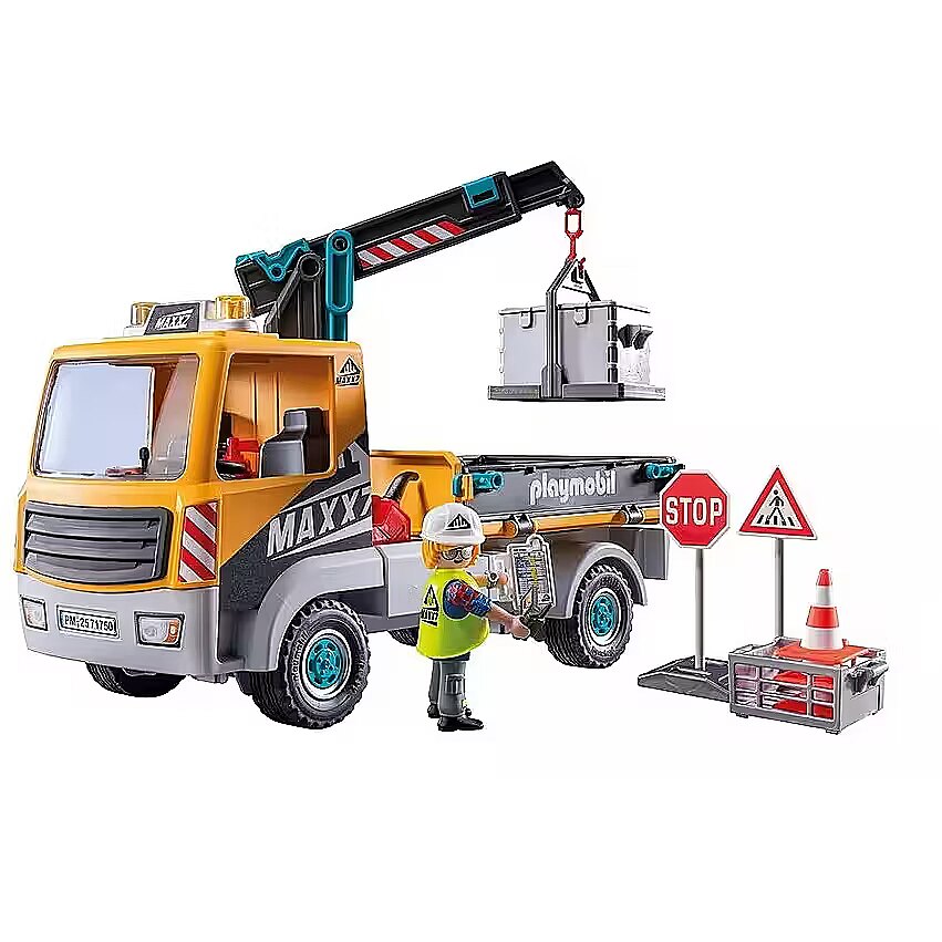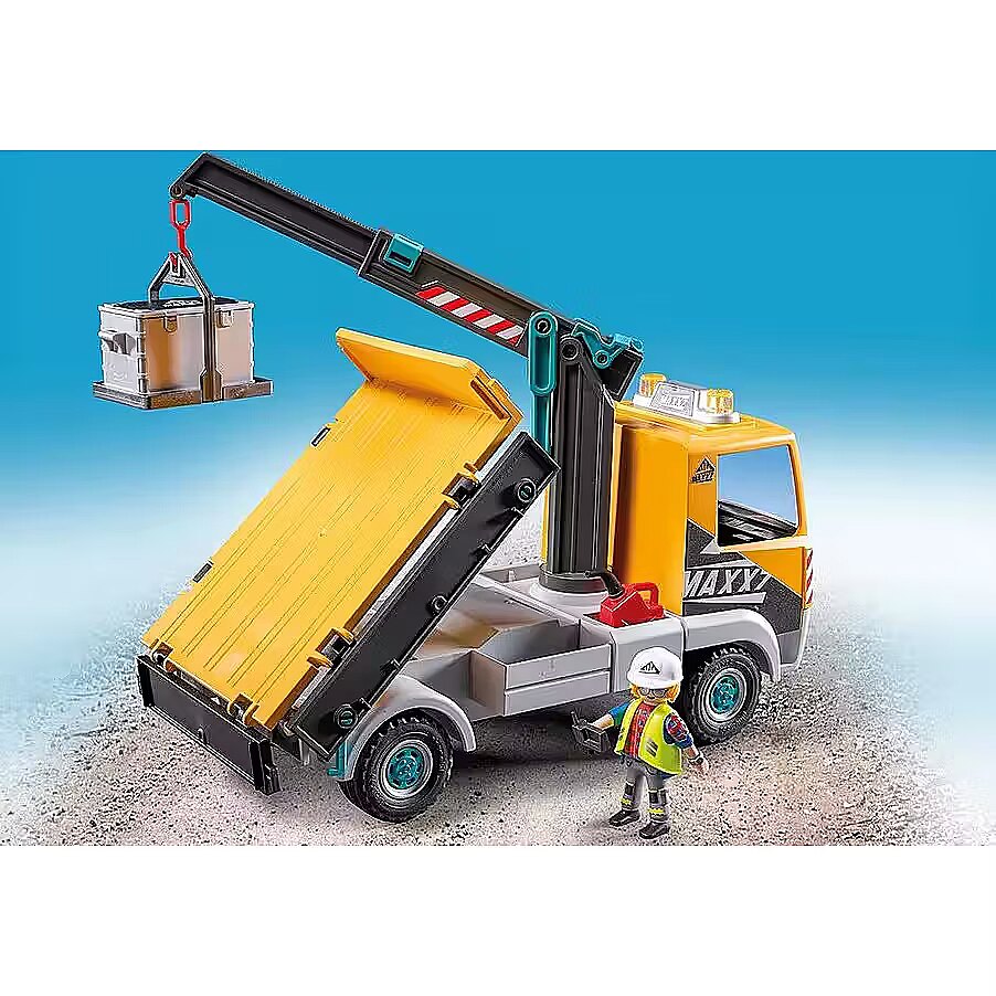 Description - Robotnicy budowlani w swojej pracy korzystają z dużej żółtej ciężarówki! Dzięki teleskopowemu ramieniu, które można wysuwać i obracać, może ono z łatwością przenosić nawet ciężkie elementy znajdujące się na placu budowy. Dużą przestrzeń ładunkową można przechylać w górę i w dół, a boczne burty otworzyć. Każdy plac budowy potrzebuje ciężarówki budowlanej PLAYMOBIL z dźwigiem! Dzięki zdejmowanemu dachowi i miejscu dla dwóch figurek ciężarówka jest najlepszą maszyna do pracy zespołowej na terenie budowy. Wysuwane i obrotowe ramię dźwigu z łatwością poradzi sobie z ciężkimi ładunkami, a przechylana przestrzeń ładunkowa i rozkładane boki ułatwiają rozładunek. Dzieci mogą wyposażyć robotnika w zdjemowany kask, kamizelkę ochronną i notatnik, aby uzyskać więcej realizmu z odgrywania ról. Zestaw PLAYMOBIL jest gotowy do ożywienia wielkich przygód budowlanych!