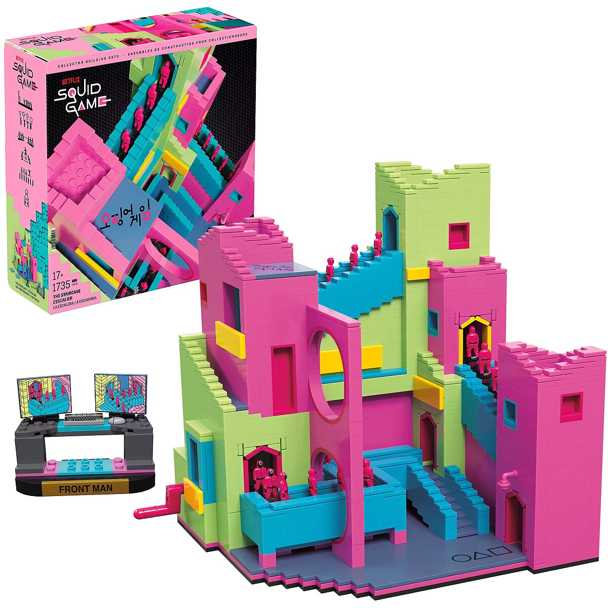 ShortSummaryDescription - Mattel MEGA Squid Game Staircase Building Toy Kits with Action Figure (1707 pieces) for Collectors, Building set, 17 yr(s), Plastic, 1707 pc(s), 3.33 kg