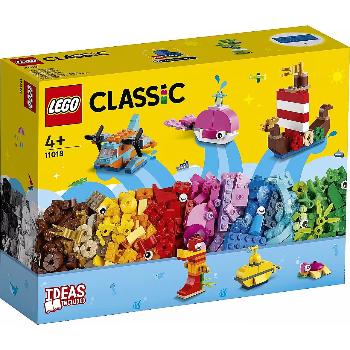 Technical_details - 11018 Classic Creative Sea Fun Construction Toy LEGO Classic Creative Sea Fun (11018) is a construction toy for children aged 4+. The box includes a selection of brightly colored LEGO bricks, 6 inspirational ocean-themed building ideas to boost play, and 2 bags of extra bricks to build freely. With step-by-step illustrated building instructions, kids can use the building blocks to build a yellow LEGO submarine, seahorse, whale, turtle, toy Viking ship and underwater drone. Even those who build for the first time can build their own LEGO toys with pride and joy. LEGO Classic toys for ages 4+ are packed with ideas and inspiration that encourage endless play and help children develop important creative skills. Type: construction toy EAN code: 5702017117591 Manufacturer number: 11018 Series: Classic Parts: 333 pieces Age recommendation: from 4 years Target group: kindergarten children, school children Material: Plastic Warnings: Caution: Not suitable for children under 36 months! Warnings: Attention: Danger of suffocation due to small parts!