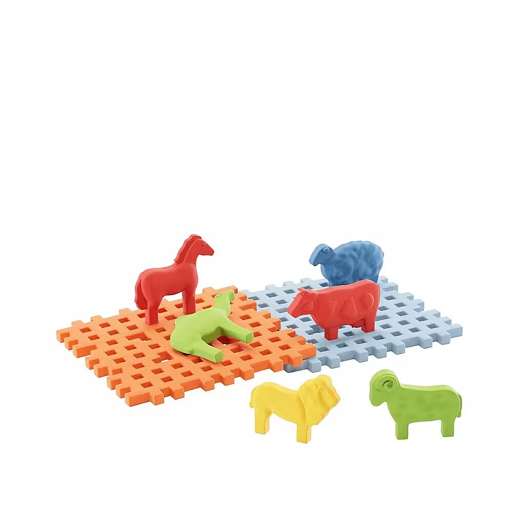 Każdy element został zaprojektowany z myślą o małych rączkach - są one elastyczne, miękkie i przyjemne w dotyku, a jednocześnie na tyle trwałe, by wytrzymać intensywną zabawę. Dzięki unikalnemu systemowi łączenia klocków Mini Waffle, dzieci mogą z łatwością układać swoje ulubione zwierzątka na podstawkach, tworząc niepowtarzalne scenerie lub wprowadzać je do swoich większych konstrukcji.