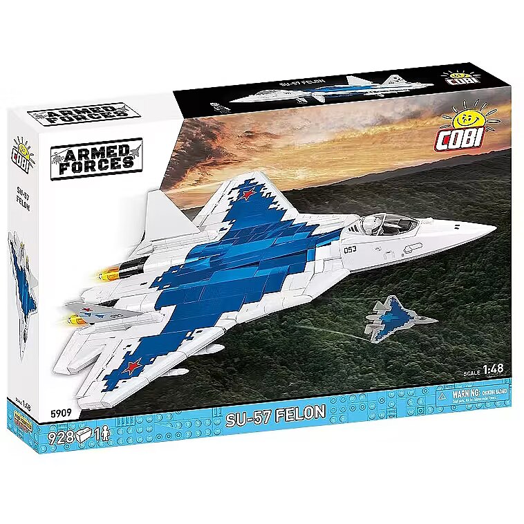 Description - W odpowiedzi na liczne prośby dorosłych fanów klocków, po raz pierwszy wprowadzamy do oferty nowoczesny samolot w rosyjskich barwach, gotowy do konfrontacji z naszą szeroką gamą modeli NATO! Zestaw SU-57 Felon odwzorowuje jeden z najbardziej zaawansowanych myśliwców piątej generacji, łączący technologię stealth z rosyjską szkołą projektowania maszyn bojowych. To doskonała propozycja dla miłośników współczesnego lotnictwa wojskowego i modelarzy ceniących nowoczesne konstrukcje. SU-57 Felon Su-57 Felon to rosyjski myśliwiec piątej generacji, opracowany przez biuro konstrukcyjne Suchoj jako następca Su-27 i odpowiedź na amerykańskie F-22 i F-35. Prace nad projektem rozpoczęto na przełomie lat 90. i 2000., a pierwszy prototyp - oznaczony jako T-50 - wzbił się w powietrze w 2010 roku. Samolot od początku miał łączyć cechy stealth, super manewrowość oraz wielozadaniowość, jednak program napotykał liczne niepowodzenia techniczne. Problemy i wypadki podczas testów skutkowały powtarzającymi się opóźnieniami w realizacji programu, a dostawa pierwszego samolotu produkcyjnego została przesunięta z 2015 na 2020 rok. Oficjalnie maszyny te zostały przyjęta do służby w 2020 roku, choć w bardzo ograniczonej liczbie. Zbuduj model Su-57 Felon i przeżyj swoją własną przygodę w świecie pełnym adrenaliny, rywalizacji i niebezpiecznych lotniczych manewrów. Dlaczego warto wybrać zestaw Su-57 Felon w skali 1:48? 928 elementów - Zestaw składa się elementów, które pozwalają na stworzenie wspaniale odwzorowanego modelu samolotu. Wersja z cyfrowym kamuflażem została oparta na rzeczywistym schemacie malowania używanym na egzemplarzach Su-57 - co czyni ten zestaw nie tylko efektownym wizualnie, ale też wiernym historycznie. Skala 1:48 - Model został odwzorowany w skali, która idealnie wpisuje się w świat innych zestawów COBI. Dzięki temu możesz swobodnie rozbudować swoją kolekcję o kolejne samoloty, a całość będzie wyglądać spójnie i profesjonalnie na półce, biurku czy w gablocie. Brak sklejania i malowania - Zestaw nie wymaga sklejania ani malowania. Wszystkie grafiki, napisy i detale są naniesione na klockach w formie bardzo trwałych nadruków, które nie ścierają się ani nie bledną, niezależnie od intensywności zabawy, ekspozycji na światło słoneczne czy kontaktu z wodą. Ruchome elementy - Model posiada otwierany kokpit, luk bombowy, oraz ruchomy system sterowniczy, co dodaje mu dynamiki i sprawia, że jest on bardziej żywy. W otwieranej kabinie można umieścić pilota oraz podziwiać wnętrze kokpitu. Figurka pilota - Zestaw zawiera figurkę pilota, w kasku i w uniformie, którą można posadzić w kokpicie, co zwiększa realizm modelu, oraz atrakcyjność w zabawie i wymyślaniu własnych scenariuszy. Uzbrojenie - Model ma dołączone repliki oryginalnego uzbrojenie. Są to rakiety typu R-77M przeznaczone do zwalczania celów powietrznych na średnich dystansach i KS-172 przeznaczone do zwalczania celów powietrznych na bardzo długich dystansach, nawet do 400 km. Pomarańczowe płomienie z silnika - Zestaw posiada klocki w kolorze pomarańczowym, które imitują płomienie wychodzące z silnika myśliwca. To ważny detal, który pozwala wspaniale wyeksponować samolot a także jest bardzo atrakcyjny w czasie zabawy modelem. Podstawka ekspozycyjna i tabliczka - Dołączona podstawka i tabliczka z nazwą zestawu, pozwalają na profesjonalne wyeksponowanie modelu w Twojej kolekcji, dzięki czemu będzie on prezentować się doskonale na półce czy w gablocie. Prosta budowa i intuicyjna instrukcja - Nie musisz być profesjonalnym klockowym modelarzem, aby zbudować ten niesamowity model. Dzięki czytelnej i intuicyjnej instrukcji opartej na rysunkach i ikonach budowa nie sprawi żadnych problemów, nawet mniej doświadczonym budowniczym. Szeroki wybór - Sprawdź inne pojazdy z serii ARMED FORCES i stwórz własną kolekcję niesamowitych maszyn! Dzięki zestawowi Su-57 Felon od COBI, możesz dodać do swojej kolekcji myśliwiec, który na stałe zapisał się w dziejach wojskowego lotnictwa. Nasza wersja SU-57 jest bardziej stealth niż oryginał żadnych wystających śrubek ani szczelin. A w przeciwieństwie do naszych wschodnich sąsiadów, nie mamy problemu z produkcją i eksportem sprzętu zbudowanego z klocków! Rozpocznij swoją klockową przygodę już teraz i zbuduj własną wersję jednego z najbardziej rozpoznawalnych samolotów na świecie! Baw się, eksponuj, podziwiaj ibuduj historię, klocek po klocku! 928 wysokiej jakości elementów Wyprodukowane w UE przez firmę z ponad 35-letnią tradycją Spełniają normy bezpieczeństwa dotyczące produktów dla dzieci W pełni kompatybilne z innymi markami klocków konstrukcyjnych Czytelna i intuicyjna instrukcja oparta na rysunkach i ikonach 1 figurka Skala 1:48