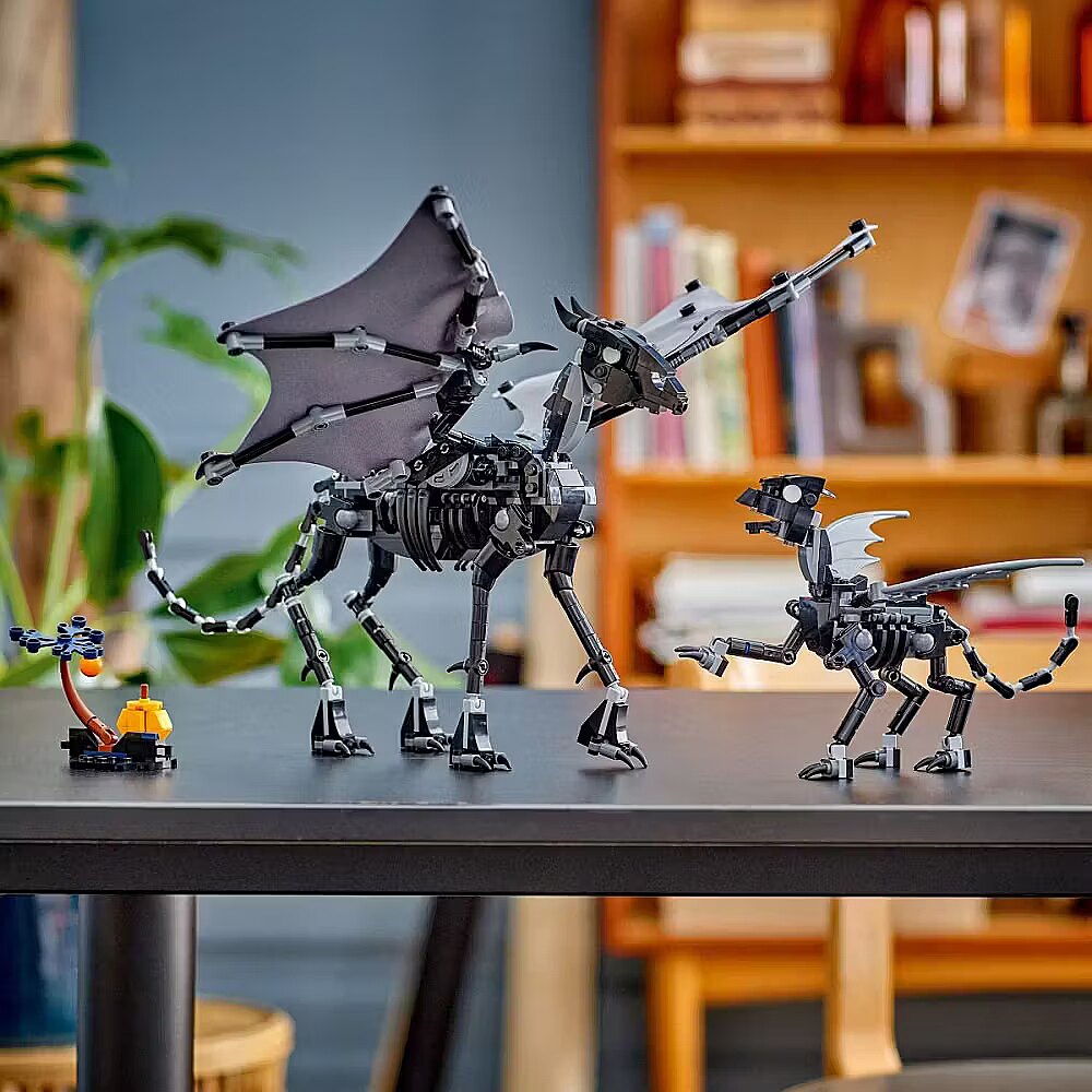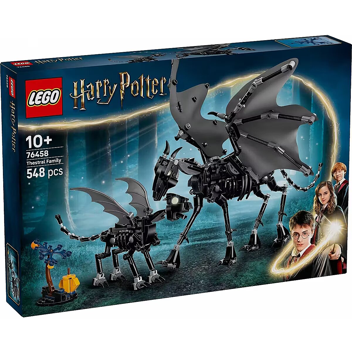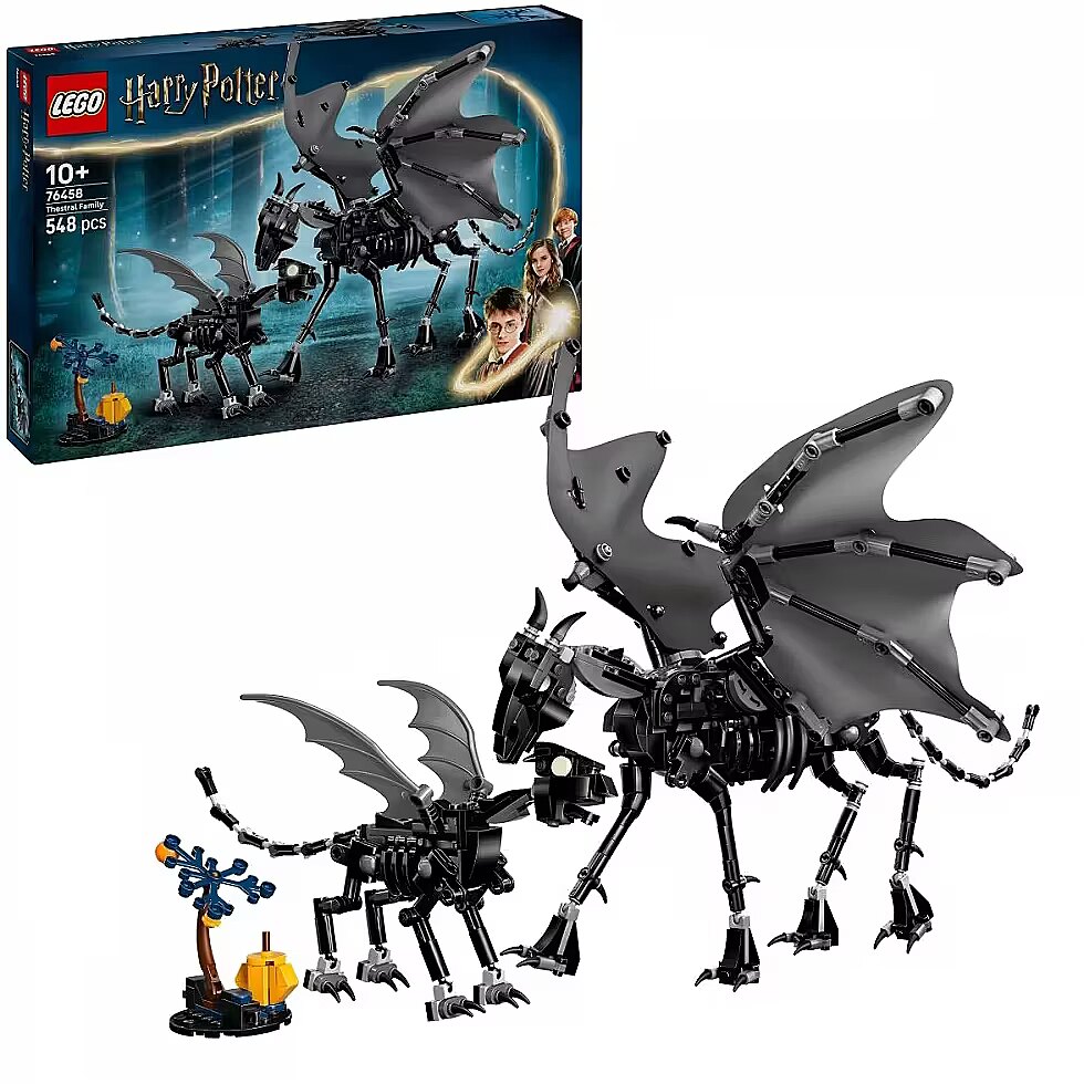 Description - LEGO Harry Potter 76458 Thestral Family Spark kids imaginations with the first-ever Thestral figures in the LEGO Harry Potter (76458) set. The set includes adult and young Thestral figures - a perfect birthday or holiday gift for girls, boys and all Harry Potter fans aged 10 and up. Each collectible creature features a movable head, wings and legs, and the adult Thestral is additionally equipped with fabric wings that can be spread out to pose it majestically in flight. A small buildable tree represents the Forbidden Forest, where Thestrals live, inspiring creative storytelling. Children can enjoy easy and intuitive building with the LEGO Builder app, where they can zoom in, rotate models in 3D, save sets and track their progress. This collectible LEGO creature set offers young witches, wizards and Muggles engaging solo or group play, and the models can be combined with other LEGO Harry Potter sets (sold separately) to create even more magical adventures. Mythical creature figures for kids - Introduce children to a world of fantastical adventures with the first LEGO Harry Potter models of an adult and young Thestral. Poseable LEGO Harry Potter collectible figures - Each Thestral has a movable head, wings and legs, and the adult features large, foldable fabric wings. Magical Thestral care play - The set offers an immersive building experience, and the detailed Thestral figures encourage imaginative play. Fun in the Forbidden Forest - Includes a small buildable tree to spark childrens creativity as they recreate scenes from Harry Potter featuring magical creatures of the Forbidden Forest. LEGO Harry Potter gift for kids - Give this collectible set as a birthday or holiday gift for creative boys, girls and Harry Potter fans aged 10 and up. Building support Discover intuitive building instructions in the LEGO Builder app, where kids can zoom and rotate 3D models, track progress and save sets while developing new skills. Part of a wider series - LEGO Harry Potter construction sets (sold separately) let young witches, wizards and Muggles recreate iconic scenes, invent their own adventures or simply collect magical models. Build, play and display - The buildable Thestral figure in this 548-piece set stands 24 cm tall.