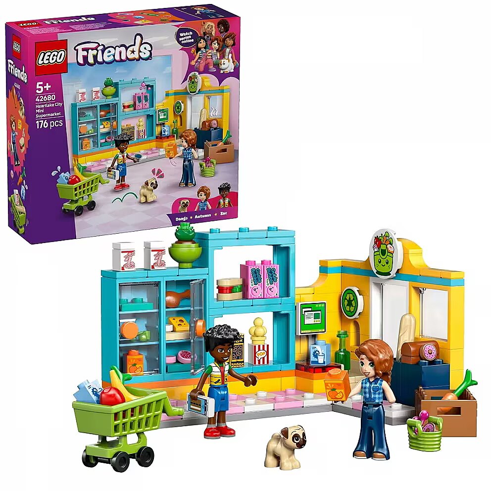 Description - Blocks Friends 42680 Heartlake City Mini Supermarket The Heartlake City Grocery Store (42680) set will inspire kids to play out shopping. Girls and boys aged five and up can create their own exciting stories with this detailed grocery store set. Realistic features include grocery shelves, a shopping cart, a basket, a recycling point, and a cash register.