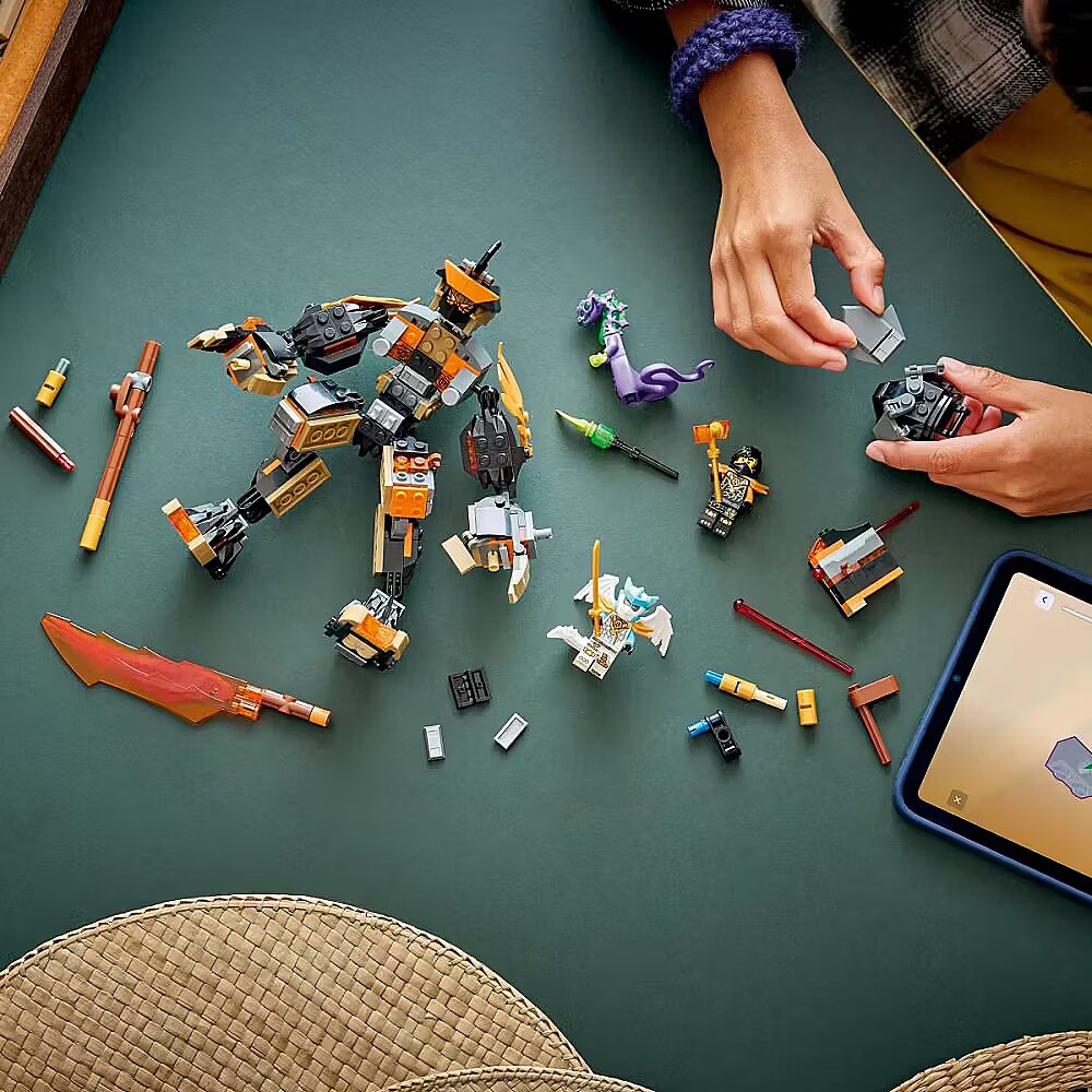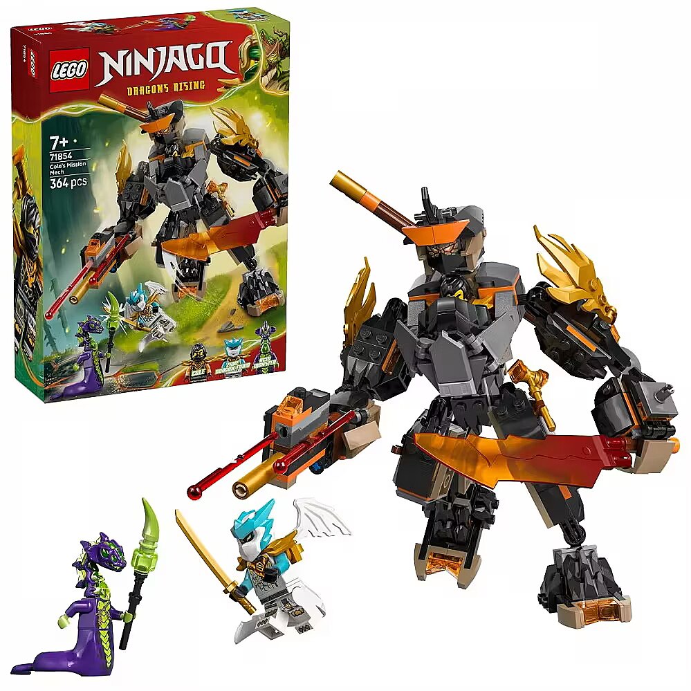 Description - Blocks Ninjago 71854 Coles Mission Mech and amp: Dragon Zane Boys and girls aged seven and up will love building the LEGO NINJAGO Special Mech of Cole and Zane in Dragon Armor (71854) and recreating scenes from the fourth season of the NINJAGO: Dragons Rising series. This set features a mech with a movable head, arms, shoulder pads, fingers, legs, and cubes, as well as a cockpit that can hold a mini-doll. The mech comes with three weapons: a sword, a staff, and a spring-loaded shooter with two arrows, which kids can swap with weapons from the Riyu Dragon Battle set (71855) (sold separately). This NINJAGO toy also includes three mini-dolls: Cole with a hammer, Zane in dragon form with a sword, and an Acid Monster with a staff for role-play adventures. The LEGO NINJAGO series offers mechs, dragons, and temples, allowing fans to act out ninja scenes. Kids can build confidently using the LEGO Builder app, where they can zoom in, rotate models in 3D, and track their progress with easy-to-follow digital instructions. The set consists of 364 pieces.