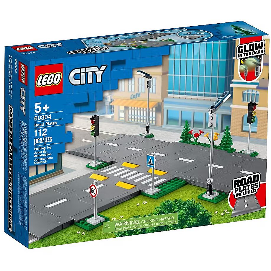 Description - This LEGO City Road Plates (60304) building set adds a realistic backdrop to kids imaginative play, with glow-in-the-dark toy streetlights, traffic lights, road signs, traffic lane markings, speed bumps, a crosswalk, trees and greenery. Kids can place the Road Plates their way, build a city around them and connect to other LEGO Road Plate building sets to expand their city creations!A great gift for LEGO City fans aged 5 and upThe LEGO City Road Plates toy playset comes with an easy-to-followbuilding guide and Instructions PLUS part of the free LEGO Building Instructions app for smartphones and tablets. This interactive construction guide with zoom and rotate viewing tools quickly helps young LEGO builders become master builders.Inspirational toys for boys and girlsLEGO City building sets stimulate open-ended, creative role play with feature-rich buildings, realistic toy vehicles and fun characters that deliver an enjoyable, fun-filled play experience based on real-life events. Kids can add a realistic backdrop to their LEGO play with this LEGO City Road Plates (60304) building set. The perfect starting point for an awesome build-and-play experience. Whats in the box? Kids get 5 LEGO Road Plates featuring traffic lane markings, speed bumps and a crosswalk, plus glow-in-the-dark streetlights, toy traffic lights, road signs, trees and greenery. Kids can create a realistic LEGO road layout with lots of authentic details and connect to other LEGO City Road Plate building sets to expand their city creations. This LEGO City Road Plates playset makes a great Christmas, birthday or any-other-day gift for kids aged 5 and up. When built, the primary Road Plate layout measures over 5 in. (13 cm) high, 17.5 in. (44 cm) wide and 15 in. (38 cm) deep. LEGO City Road Plates make a great backdrop to kids LEGO play and creations. Includes a printed building guide and Instructions PLUS part of the free LEGO Building Instructions app for smart devices. This interactive guide helps budding builders become master builders! LEGO City My City sets come with colorful buildings, cool toy vehicles and fun characters that stimulate imaginative role play as kids create open-ended adventures in realistic settings. All LEGO bricks and pieces are produced to strict industry quality standards to ensure they are consistent, compatible and fun to build with its been that way since 1958. LEGO City building toys are thoroughly tested to ensure every playset meets stringent safety standards.