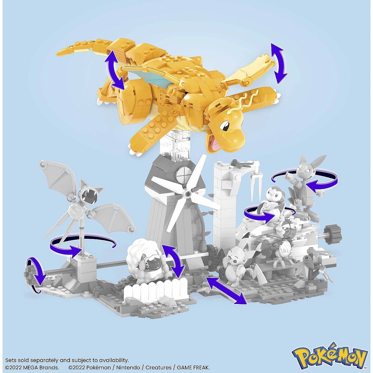 LongDesc - Watch Dragonite take flight with this building set featuring the innovative Motion Brick. Follow step-by-step instructions to build the Pokémon, then turn the crank to make the poseable Dragonite’s wings flap. Combine with the Countryside Windmill to create an expanded Pokémon world with motion. Each sold separately.