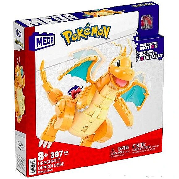 LongSummaryDescription - MEGA Pokémon Building Toy Kit Dragonite (387 Pieces) with Motion for Kids. Product type: Building set, Recommended age (min): 8 yr(s), Character: Dragonite, Material: Plastic, Number of pieces: 387 pc(s). Package weight: 568.8 g