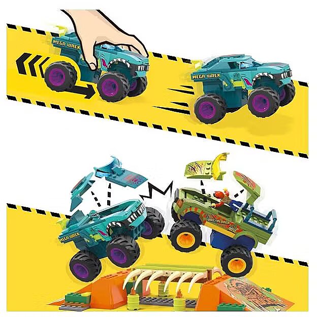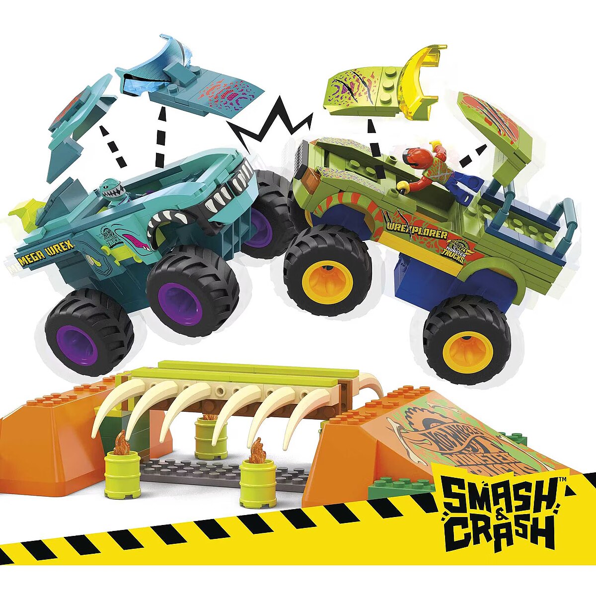LongDesc - Get ready for epic Smash & Crash action that kids will love with this Hot Wheels building toy that includes Mega-Wrex and Wrexplorer monster trucks. With 3 ways to rebuild the ramps and obstacle, kids can race, crash and smash by pulling the vehicles back and letting them go for a jump stunt to watch the pieces fly off on impact. The included buildable micro action figures fit in the driver's seat.