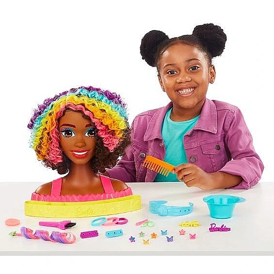 This product Mattel Barbie Głowa do stylizacji Neonowa tęcza kręcone włosy