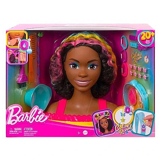 LongDesc - Anyone can be a hair stylist with Barbie Doll Deluxe Styling Heads! Colour change surprises add a touch of magic to playtime, while Colour Reveal accessories and customizable features allow for creative exploration. Choose from models with authentic hairstyles, and then let the fun begin with 22 styling pieces! Barbie Deluxe Styling Heads also come with convenient storage at the base so that kids can put away their accessories after playtime is over! Each sold separately, subject to availability. Colours and decorations may vary.