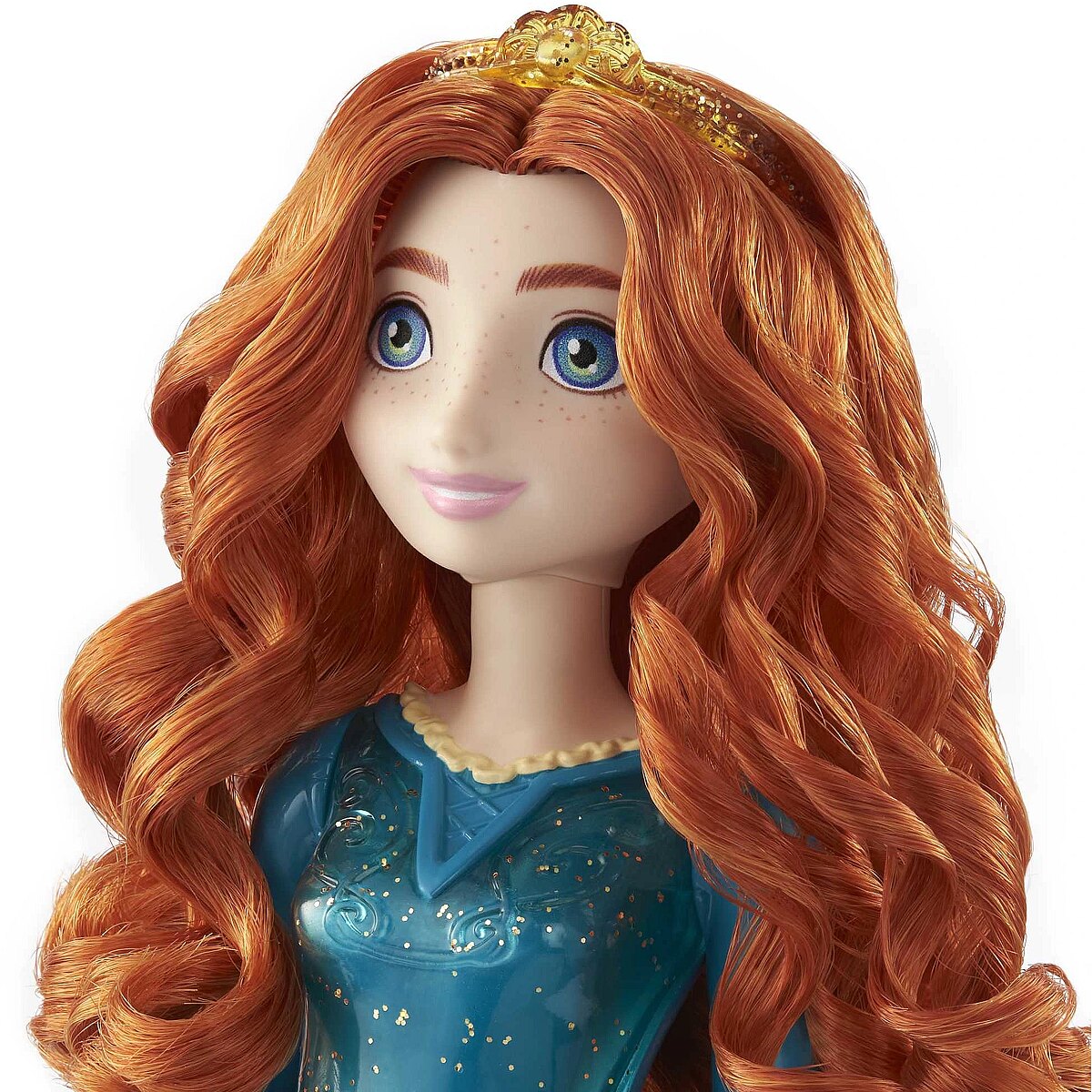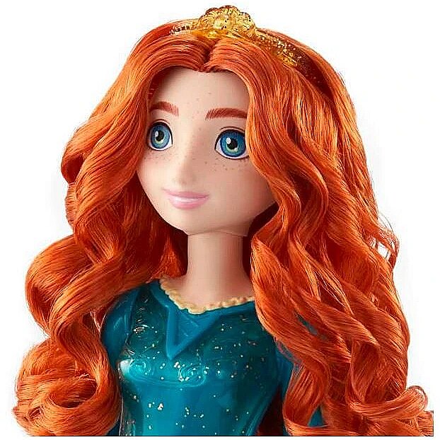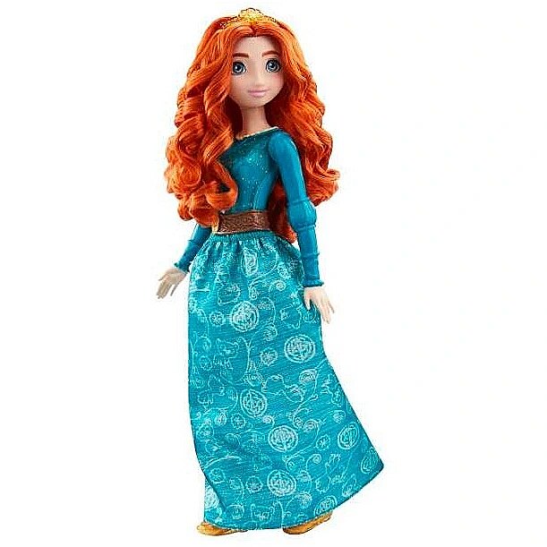 LongDesc - Meet this Disney Princess Merida doll, inspired by the confident and determined heroine from Disney and Pixar's Brave movie! This posable fashion doll is shown in a sparkling outfit and accessories that include shoes and a tiara. In her signature look inspired by the movie, this Merida doll is ready for any adventure! Doll cannot stand alone. Colours and decorations may vary.